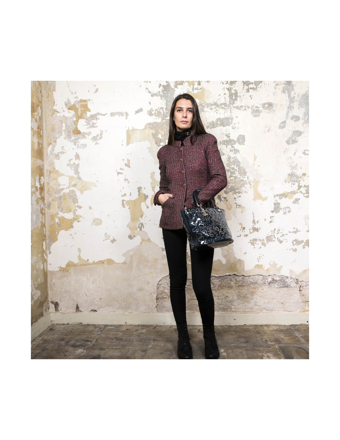 It is lined in beige alcantara with two zipped pockets. Stamp S from private sales. It has a chain ending in a double C.