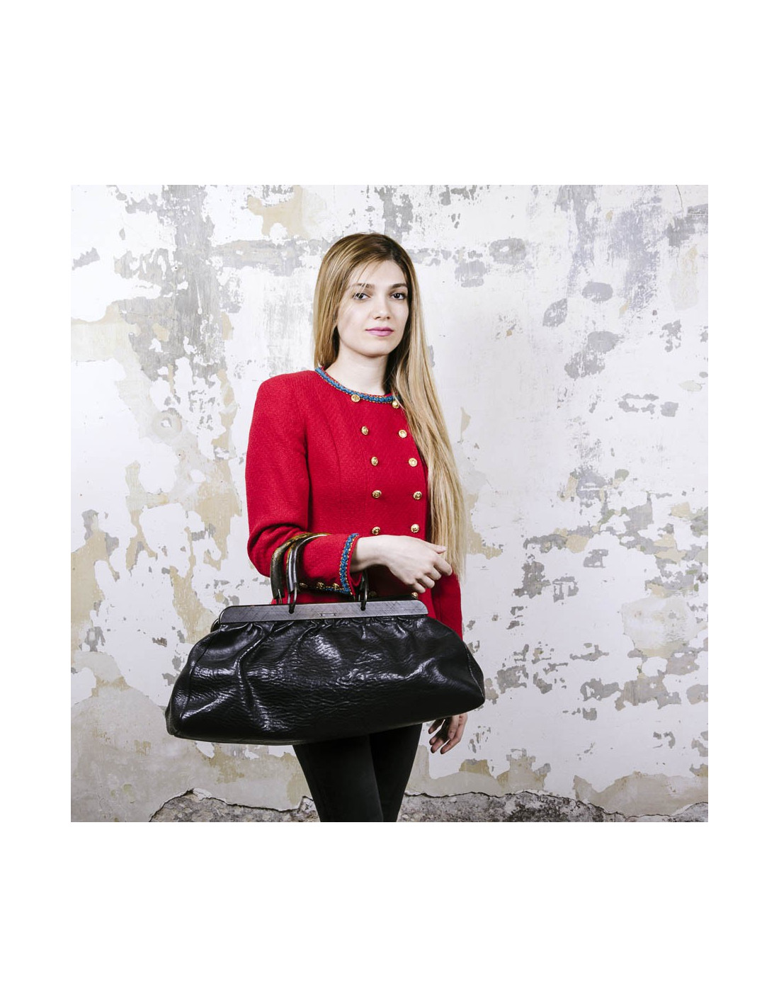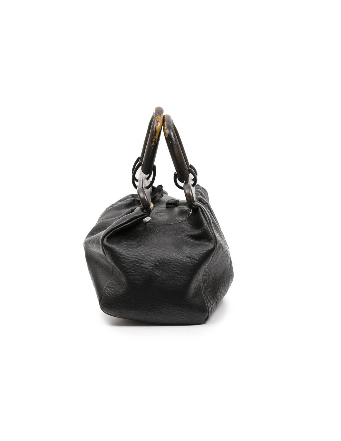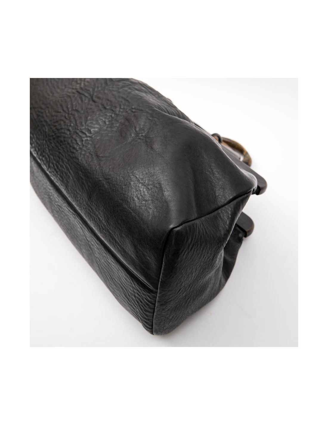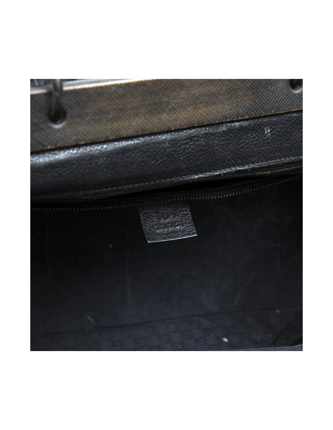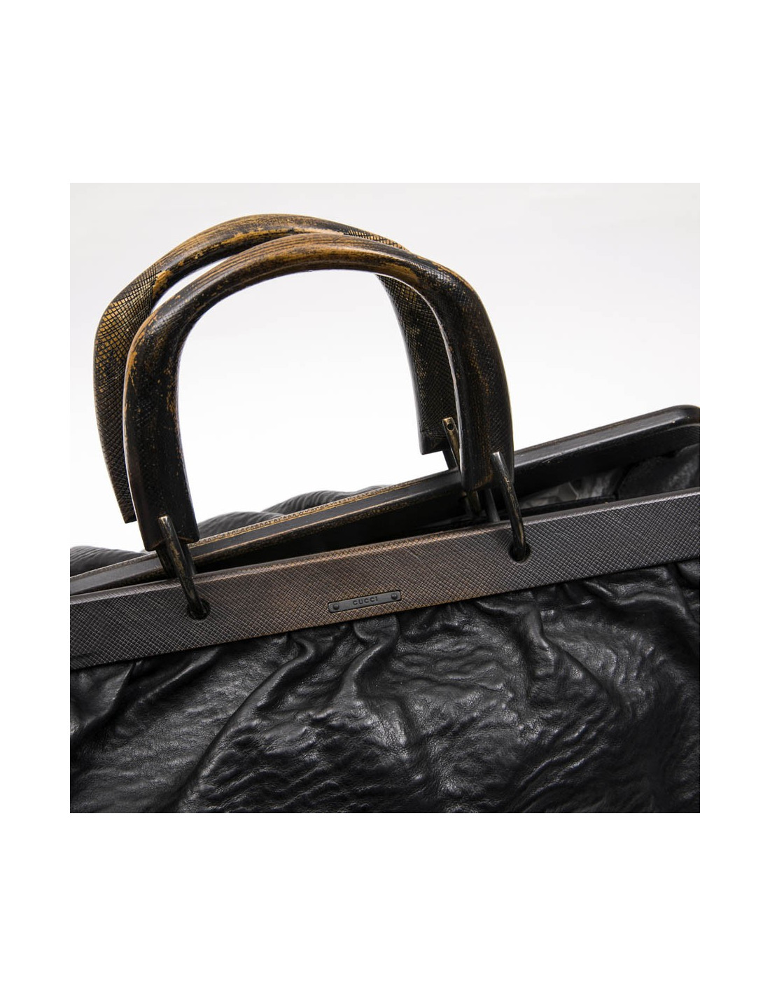 GUCCI vintage bag in a black cowhide leather and ribbed wood