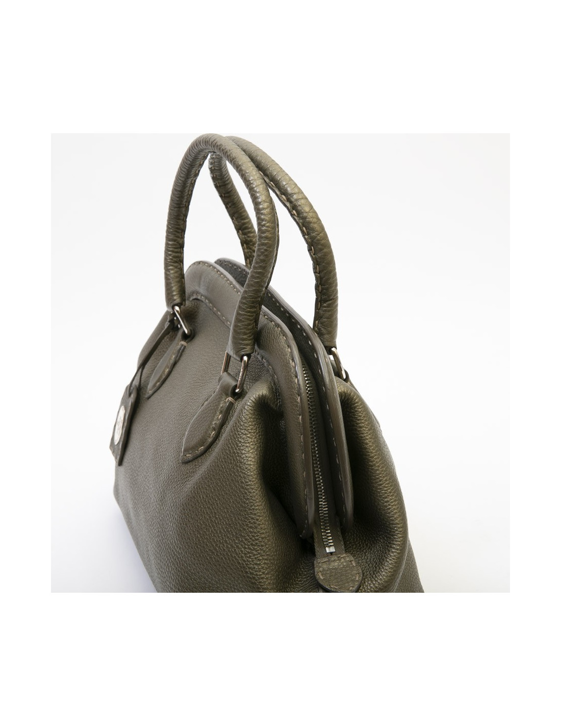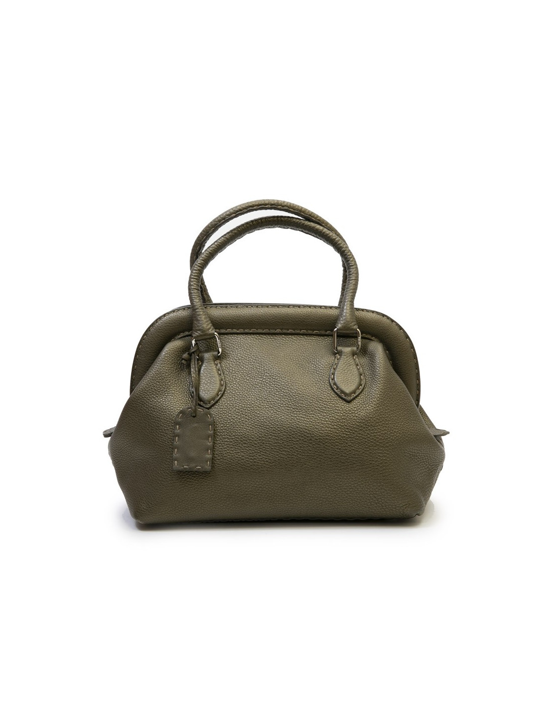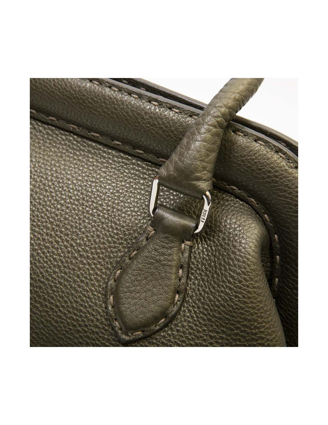 Fendi bag in green khaki grained leather.