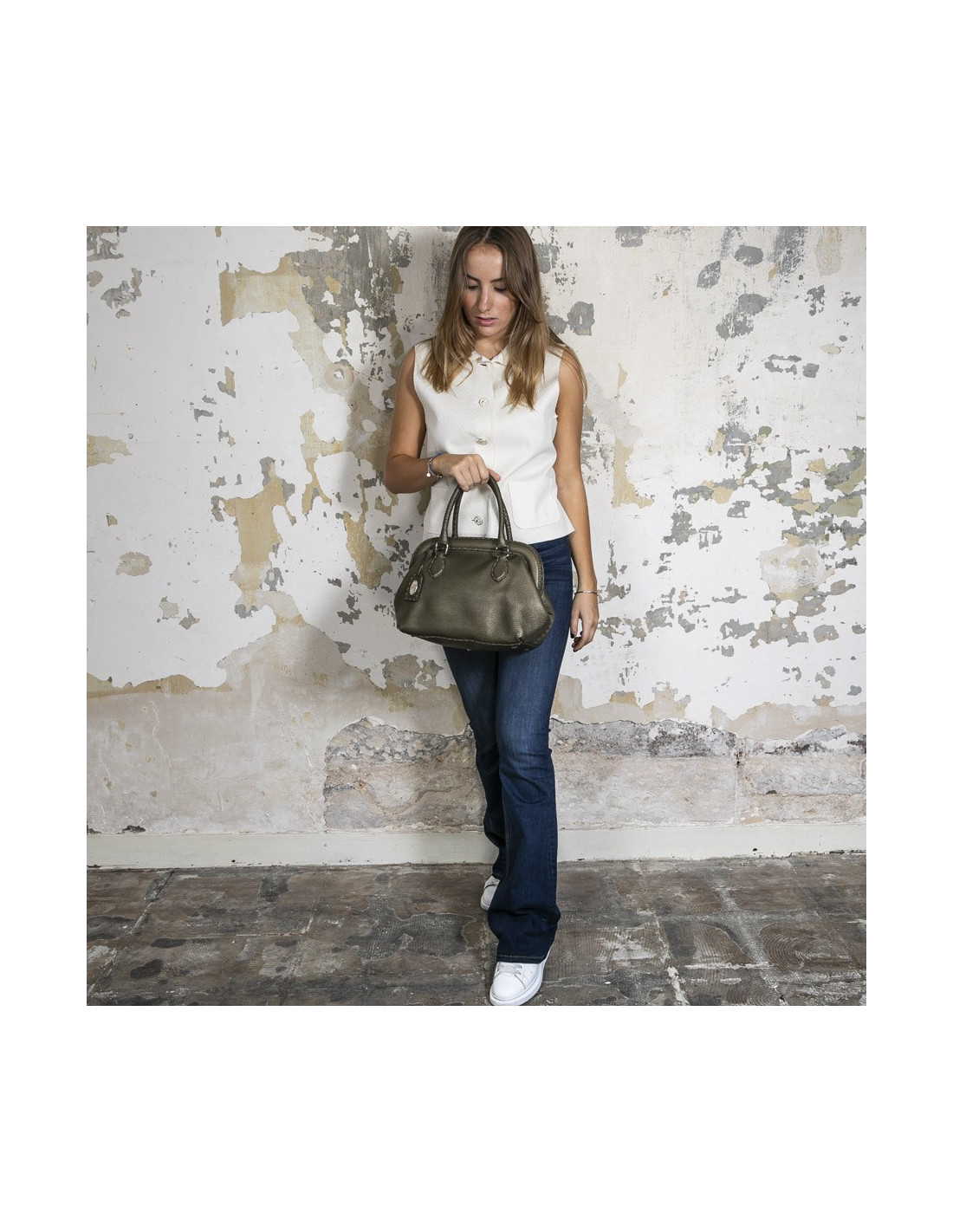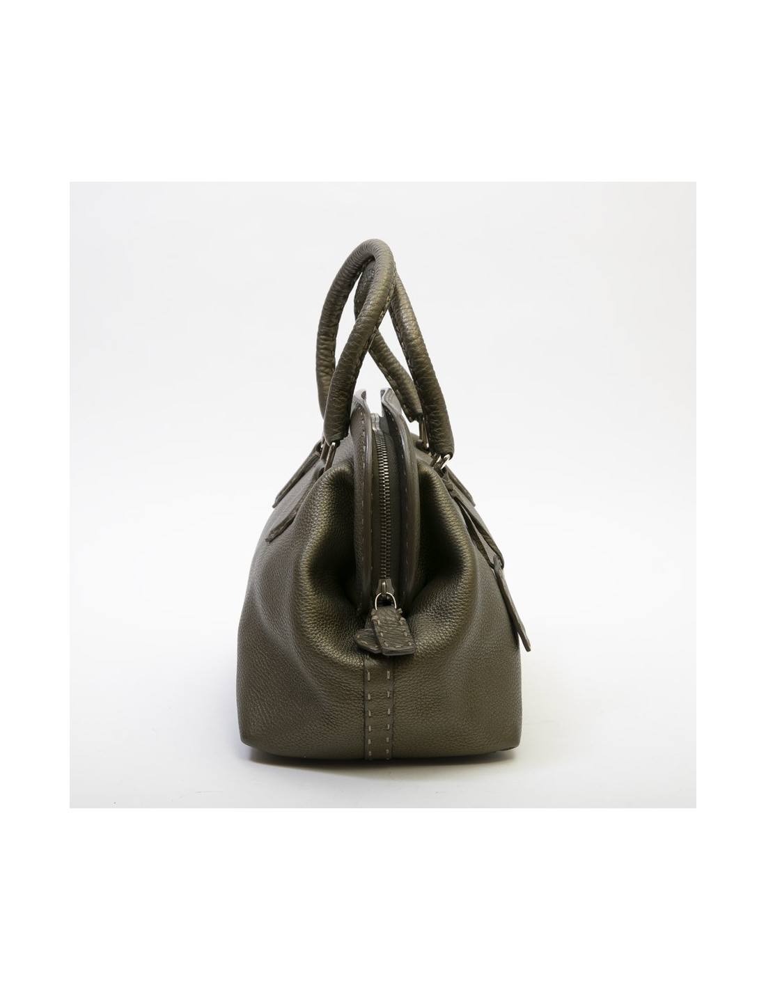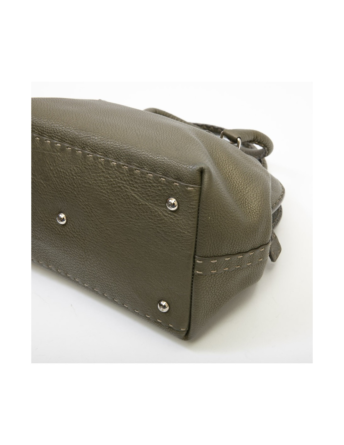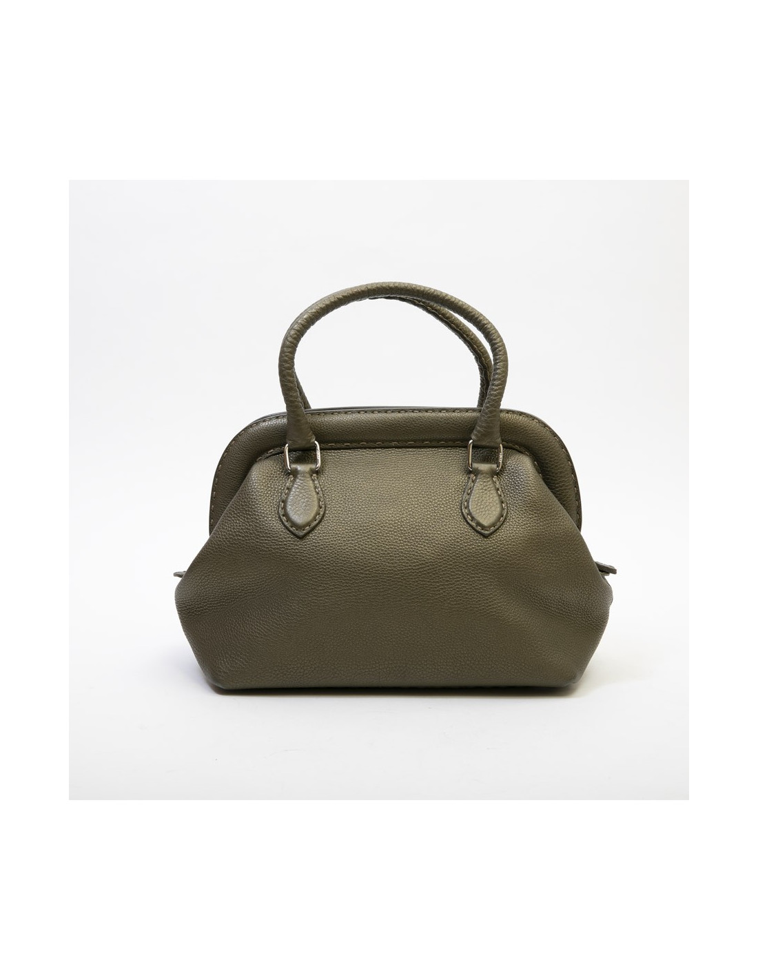Fendi bag in green khaki grained leather.