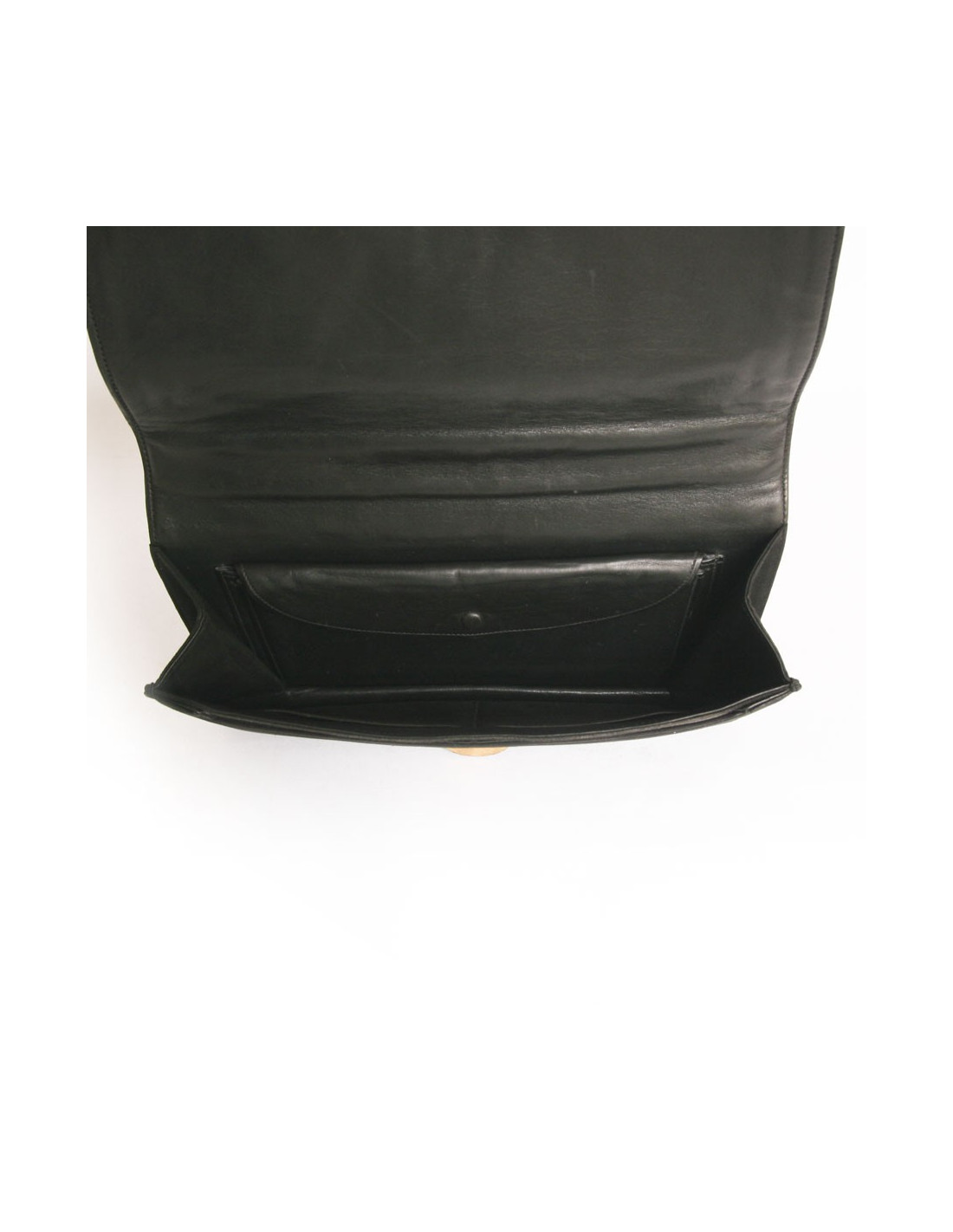 The clasp represents a golden brass horseshoe. The interior is in black leather with 4 pockets, one closed by pressure.