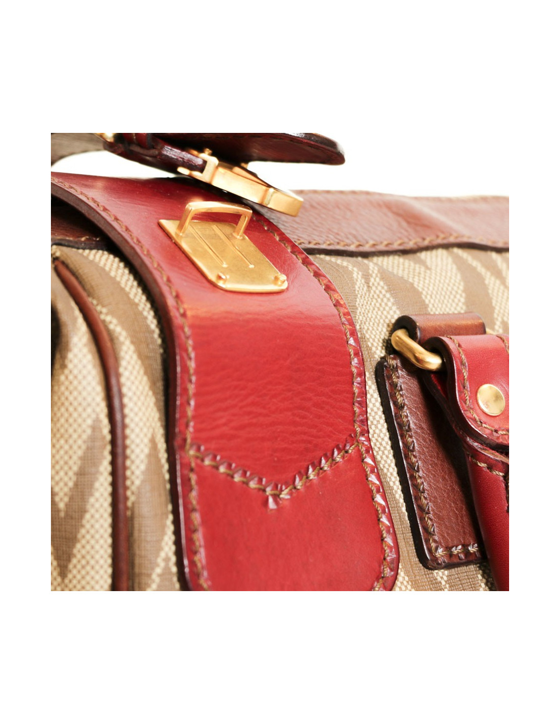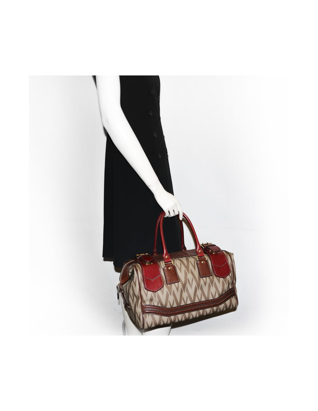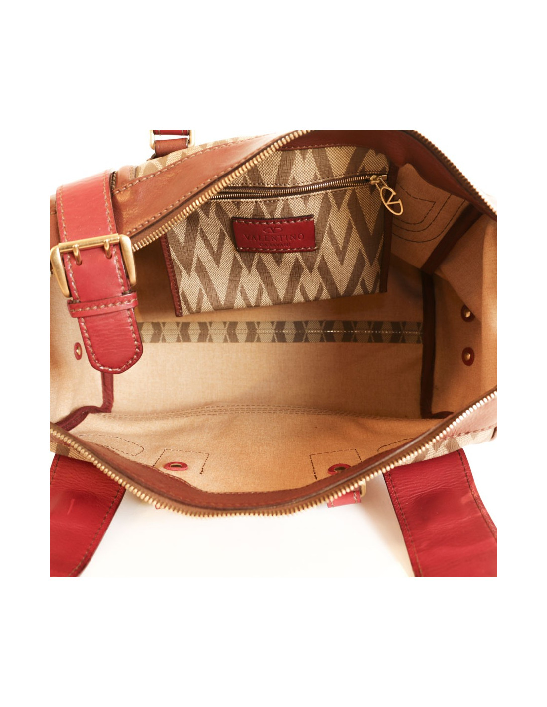 Great bag Tote Valentino, in monogram canvas leather saddle, in shades of Brown, beige and red. In perfect condition. (very little worn door). the jewelry is Matt Golden brass. It is extremely light. It is worn on the arm. Inside there is a zipped pocket.