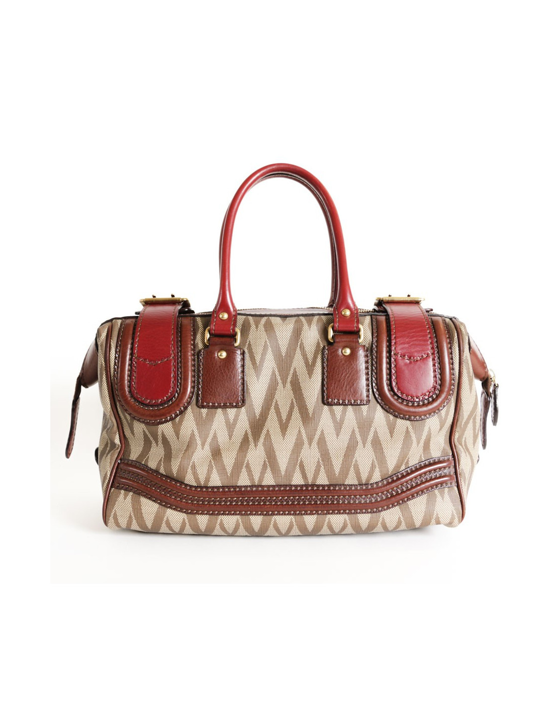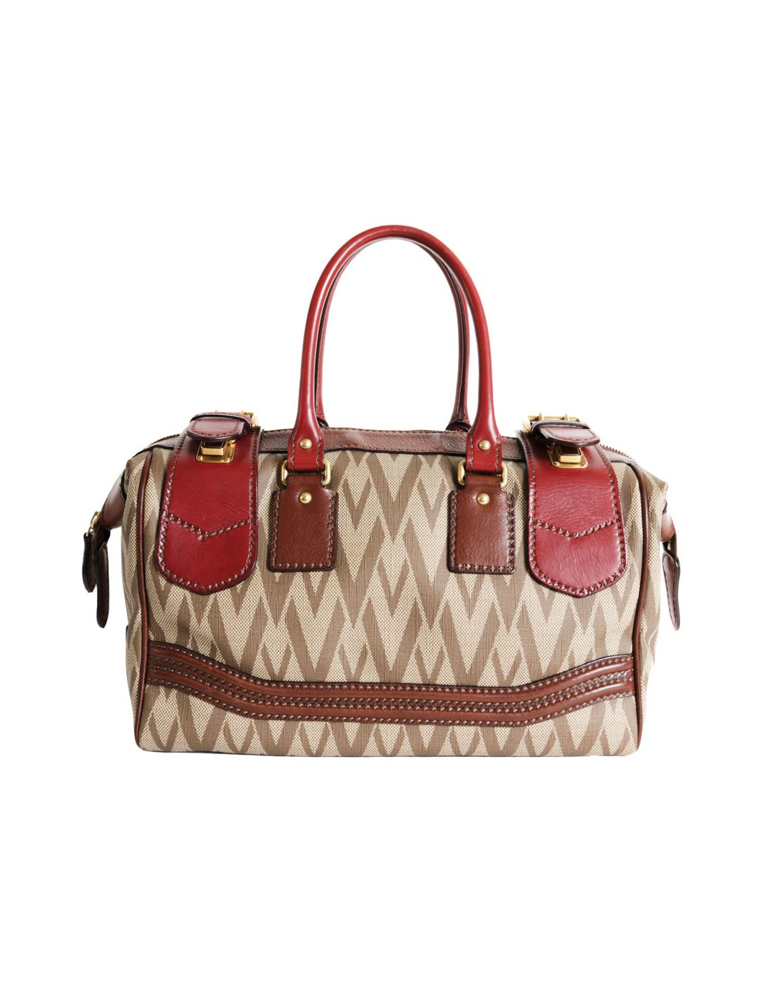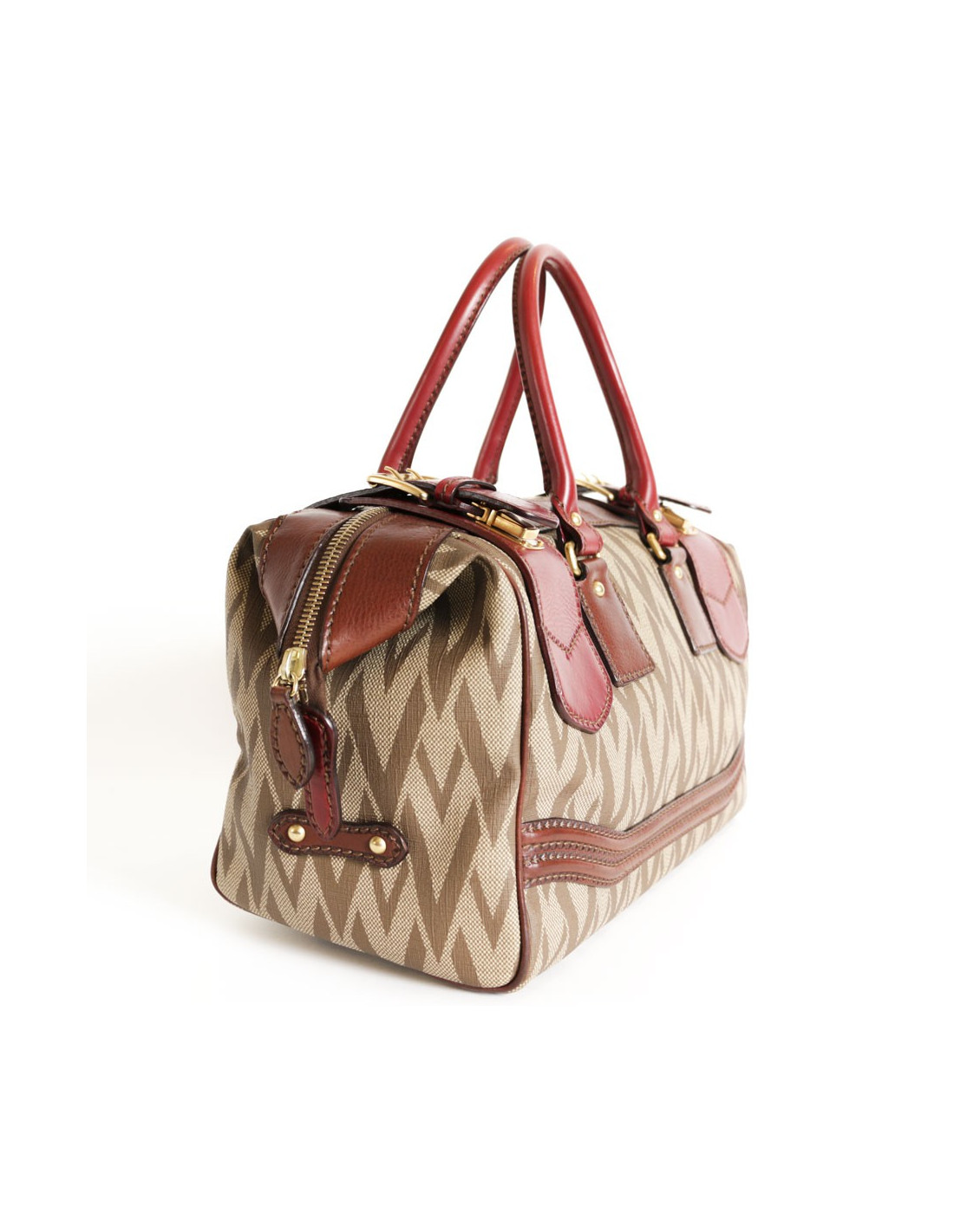 Great bag Tote Valentino, in monogram canvas leather saddle, in shades of Brown, beige and red. In perfect condition. (very little worn door). the jewelry is Matt Golden brass. It is extremely light. It is worn on the arm. Inside there is a zipped pocket.