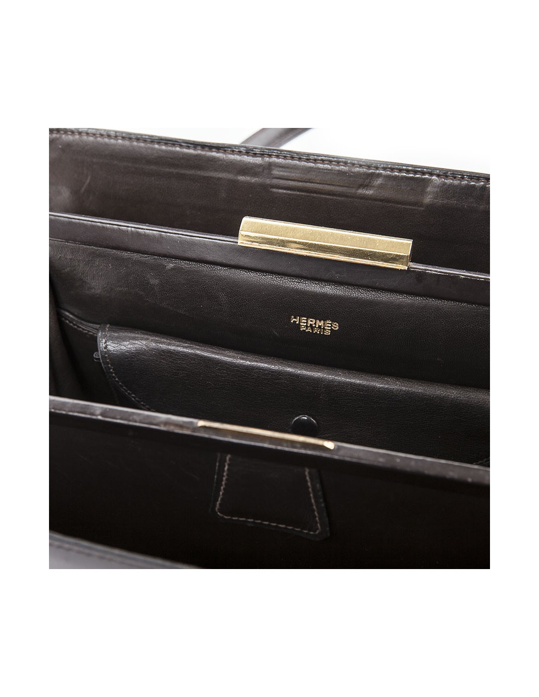 Hermès vintage 'Pullman' bag in brown box leather. Gilded metal hardware. Inside there are 3 storage spaces.