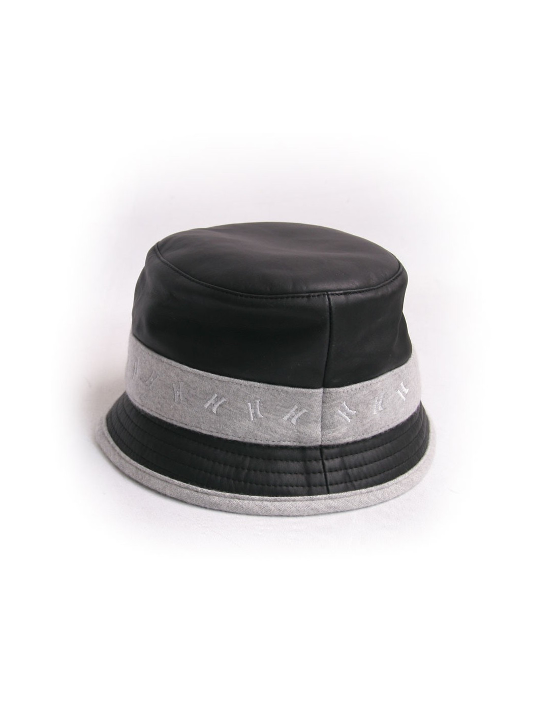 HERMES black calfskin and grey cashmere bucket hat size 57