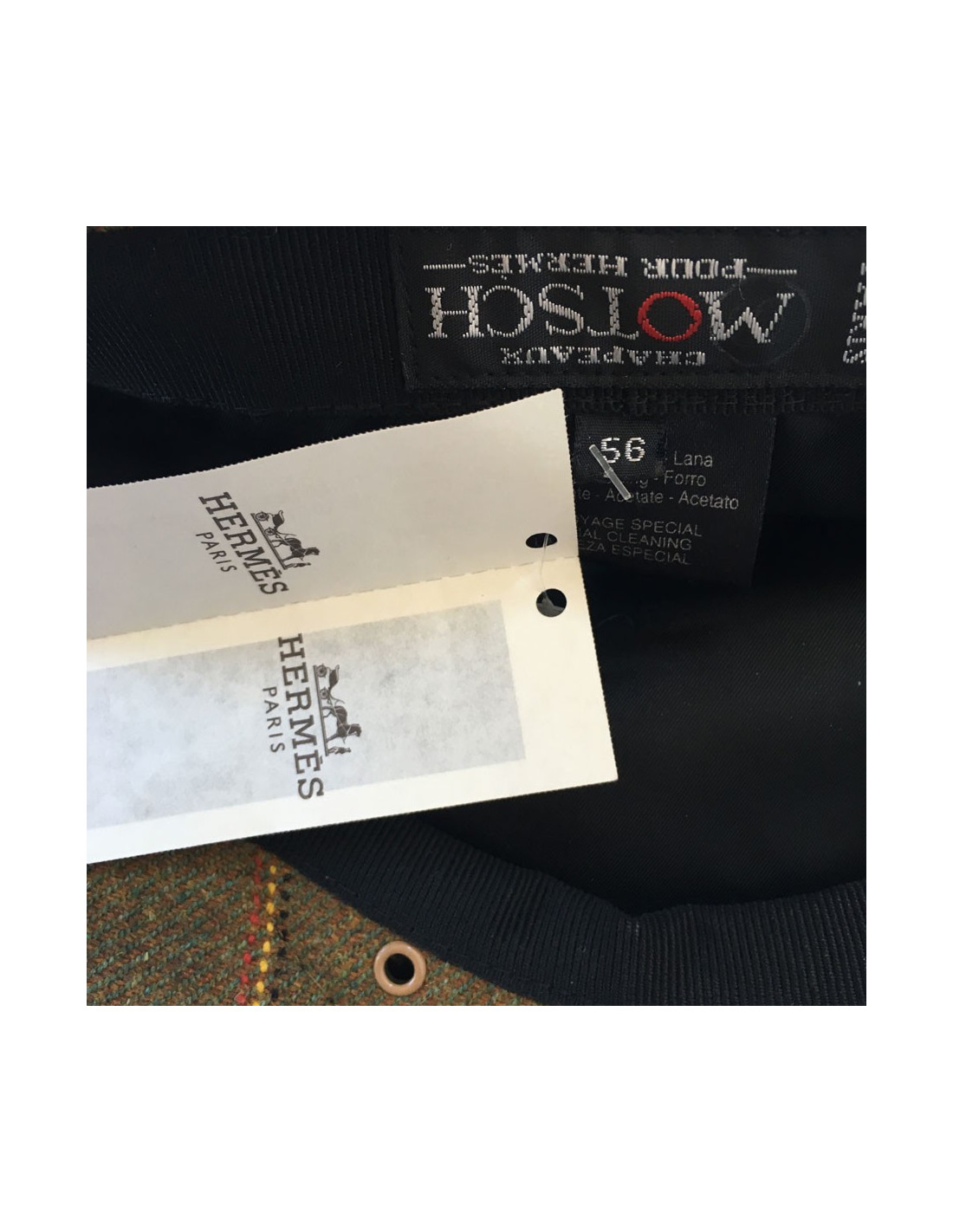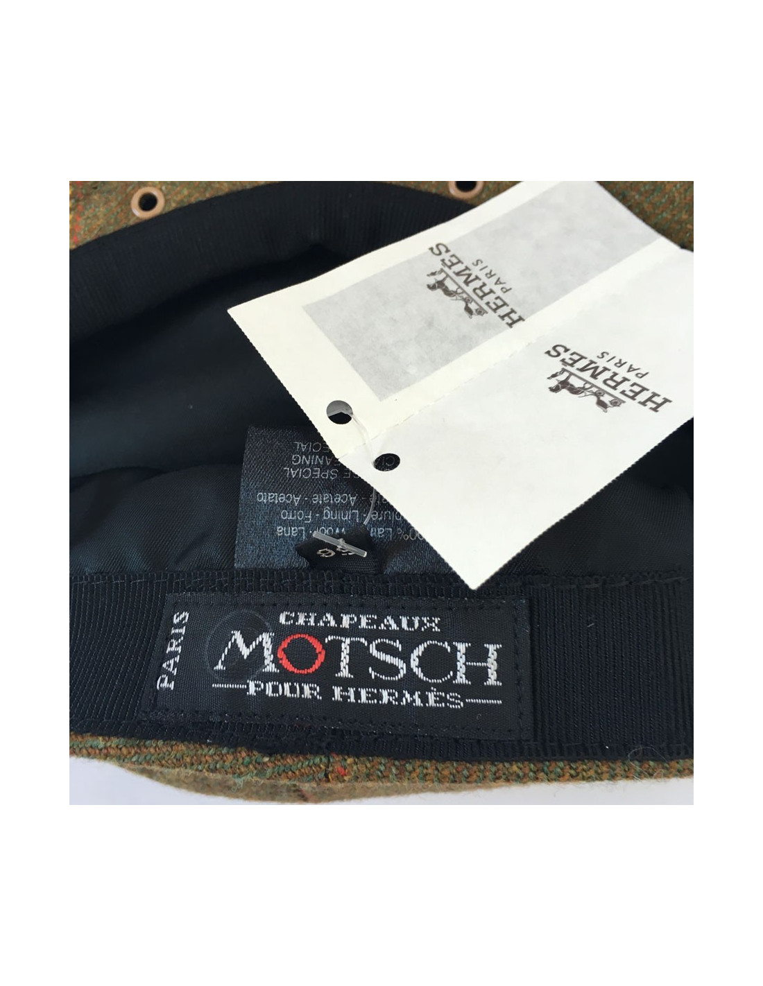 MOTSCH cap for HERMES "Edinburgh" collection in wool with khaki check pattern