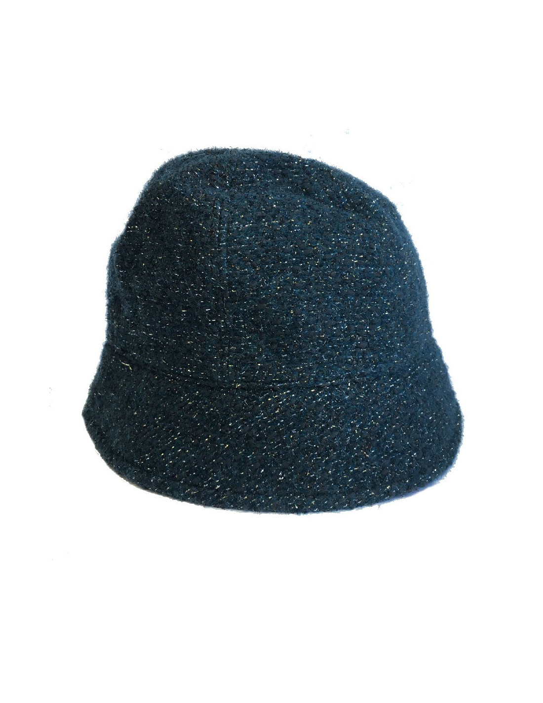 CHANEL hat in green tweed, gold thread and molten glass jewel