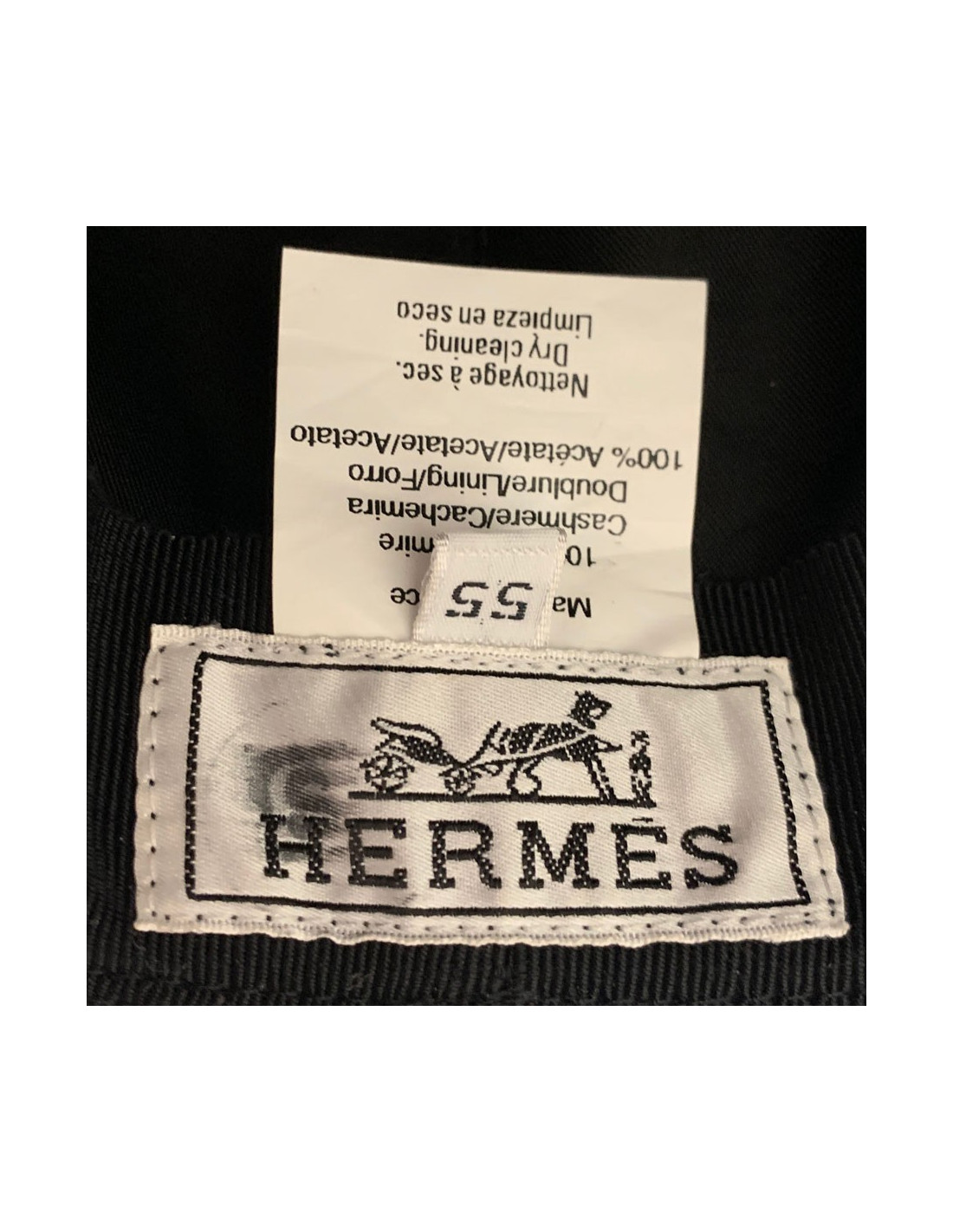 Elegant HERMES hat in navy blue cashmere, size 55. Black acetate lining. Made in France.