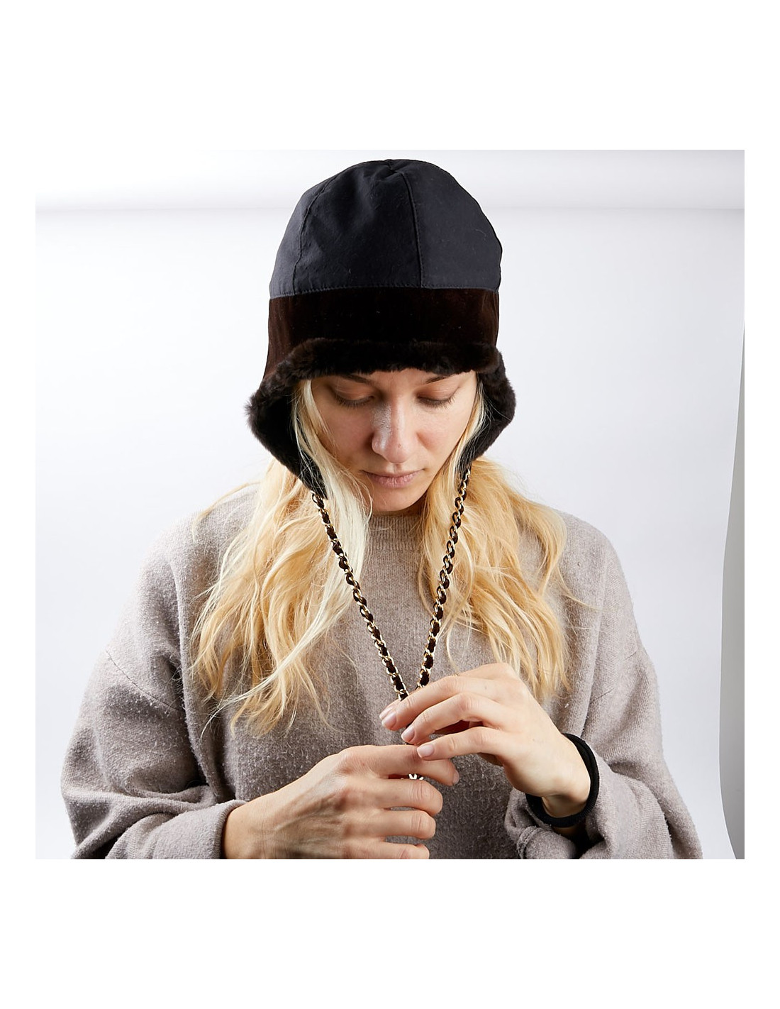 -92.00 € Sold HEADWEAR Unsigned Chapka In suede and black mink fur AUTRES MARQUES 17295 28.00 € 120.00 € Unsigned Chapka In suede and black mink fur Condition: never wornMaterials: mink fur, suedeColor: blackMeasurements: head circumference: 52cmDetails: no brand Delivered in a Valois Vintage Paris dustbag View