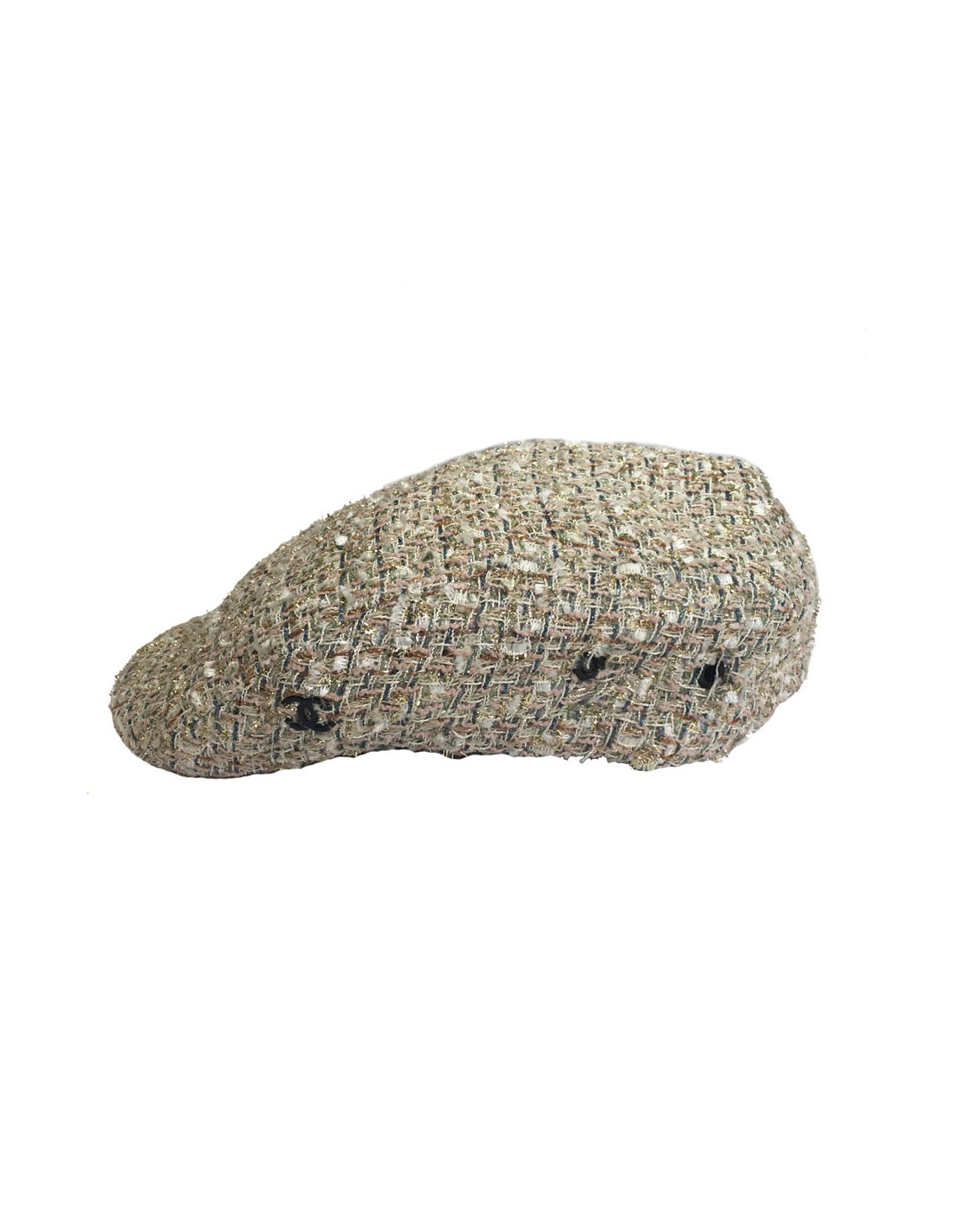 Ravishing Chanel CAP, size M, in tweed pink, white, green jade, gold, gray, amber. This multitude of intertwined wires make this cap/beret a necessary fashion accessory and especially agree with a multitude of parts.