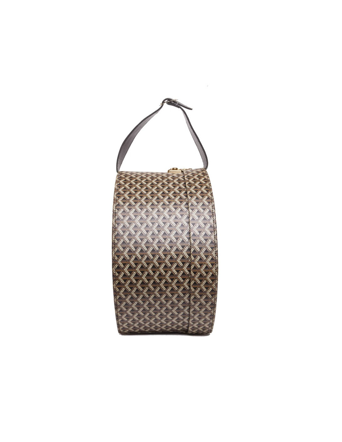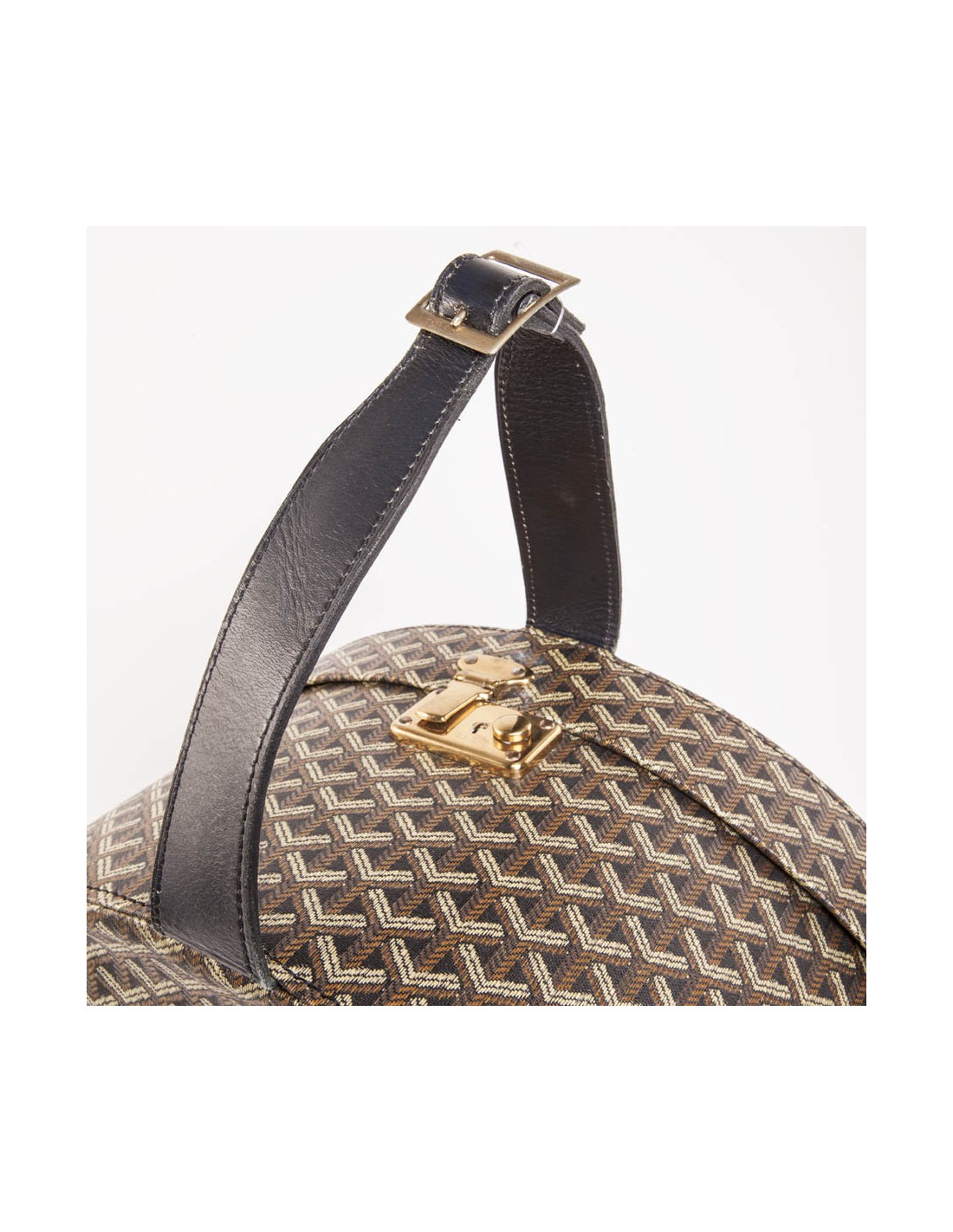 Rare. Box hats vintage Brown monogram of the House Goyard canvas. Golden jewelry. The Interior is in powdery pink silk. Is handmade using a handle in black leather. In very good condition. 2 tasks in the background inside. See photos.