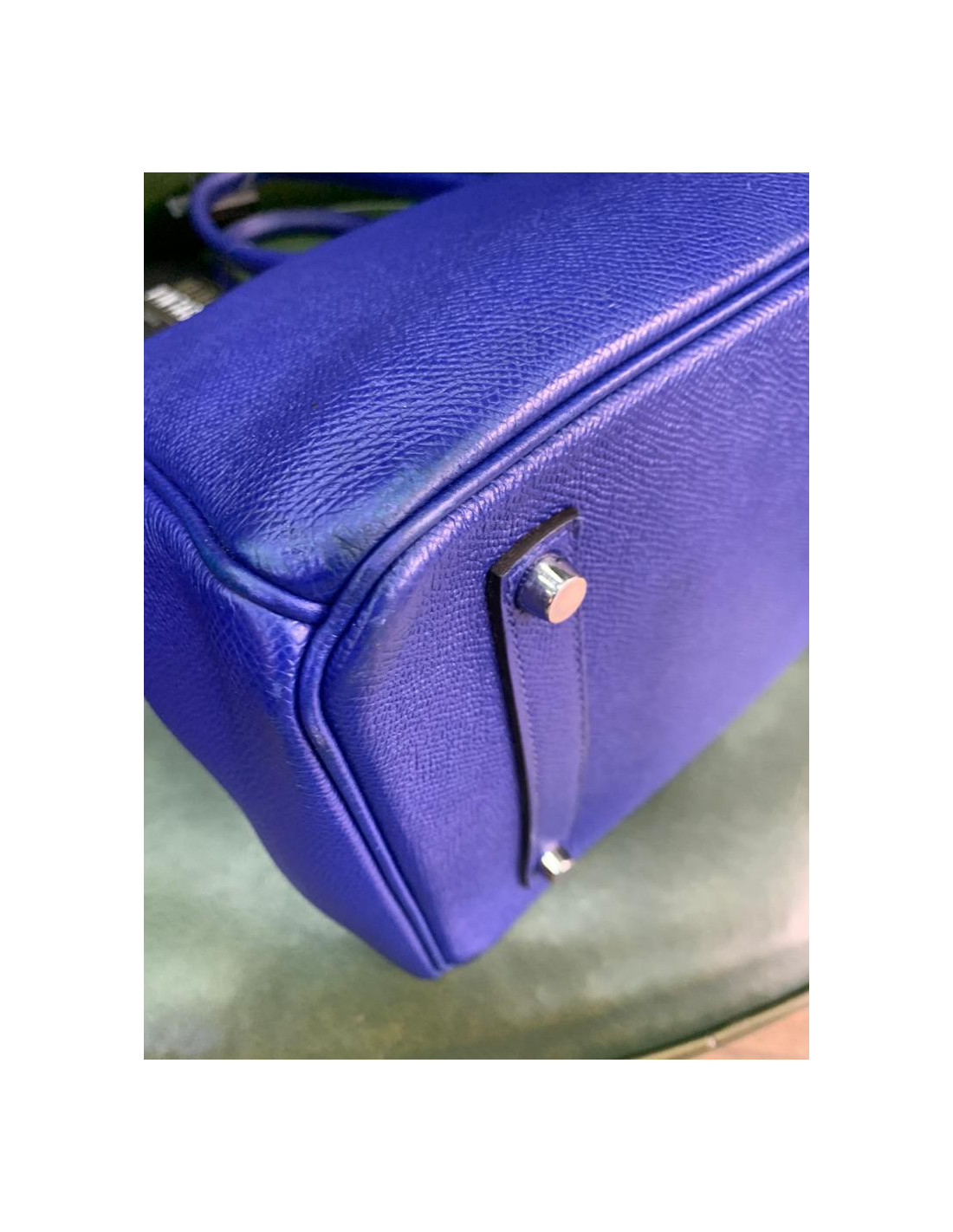 It is in very good condition, worn once. The jewelry is made of palladium silver metal. It is delivered with its padlock, keys, zipper and bell. Electric blue Birkin bag - details: It is French made. Its dimensions are: length 35 cm, height 25 cm, depth 18 cm. It can be carried by hand or on the arm.