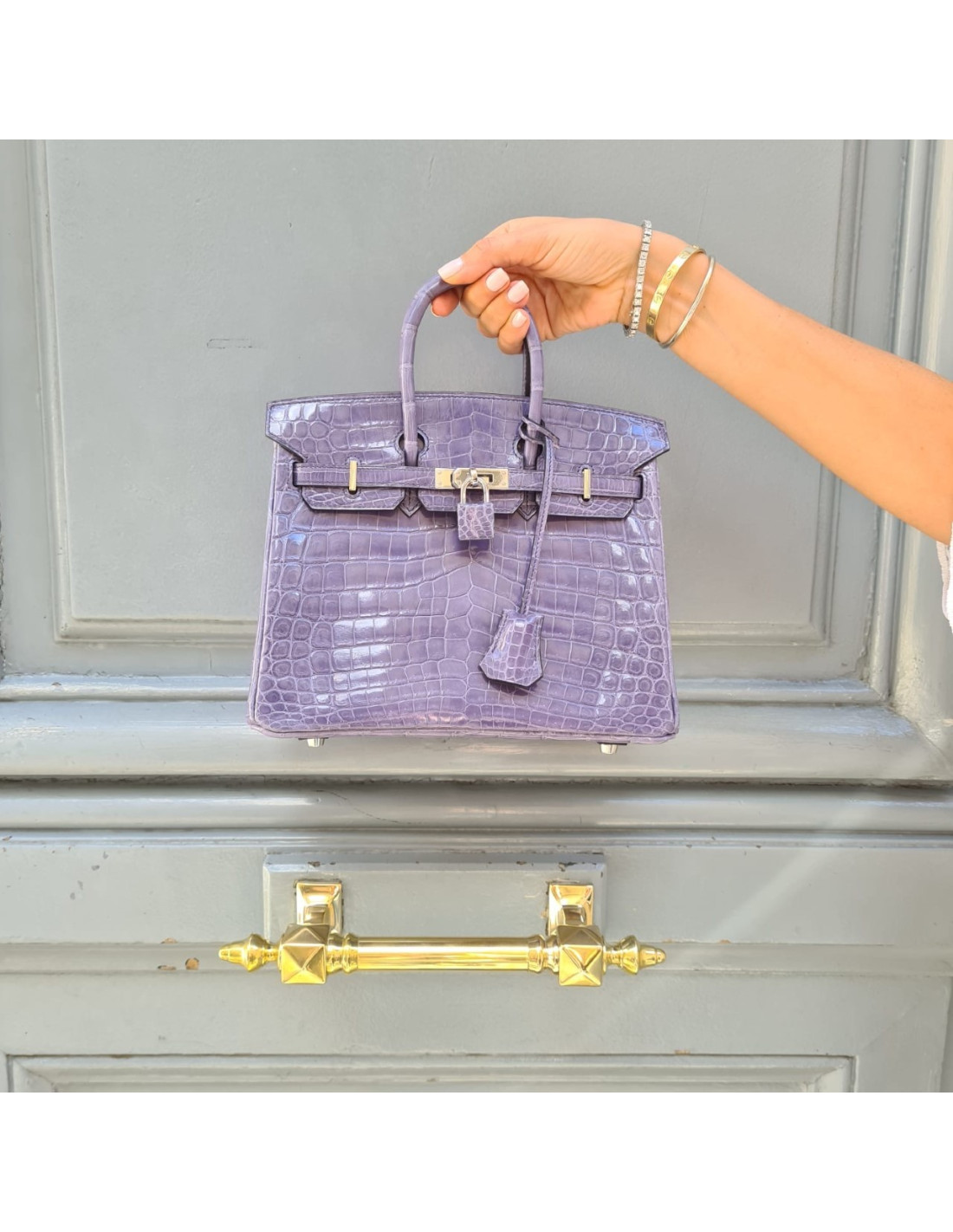 New Last items in stock HERMES BIRKIN B25 Hermès crocodile porosus blue HERMES 42772 97,800.00 € B25 Hermès crocodile never worn Condition: Never wornCountry of manufacture: FranceMaterial: Crocodile Porosus leatherInterior: Smooth navy blue leatherColor: Navy blueDimensions: 25 x 23 x 10 cmSerial number: BN…Year: 2023Hardware: Gold-tone metal The + Valois Vintage Paris : Delivered with its original Hermès box and dustbag. Add to cart