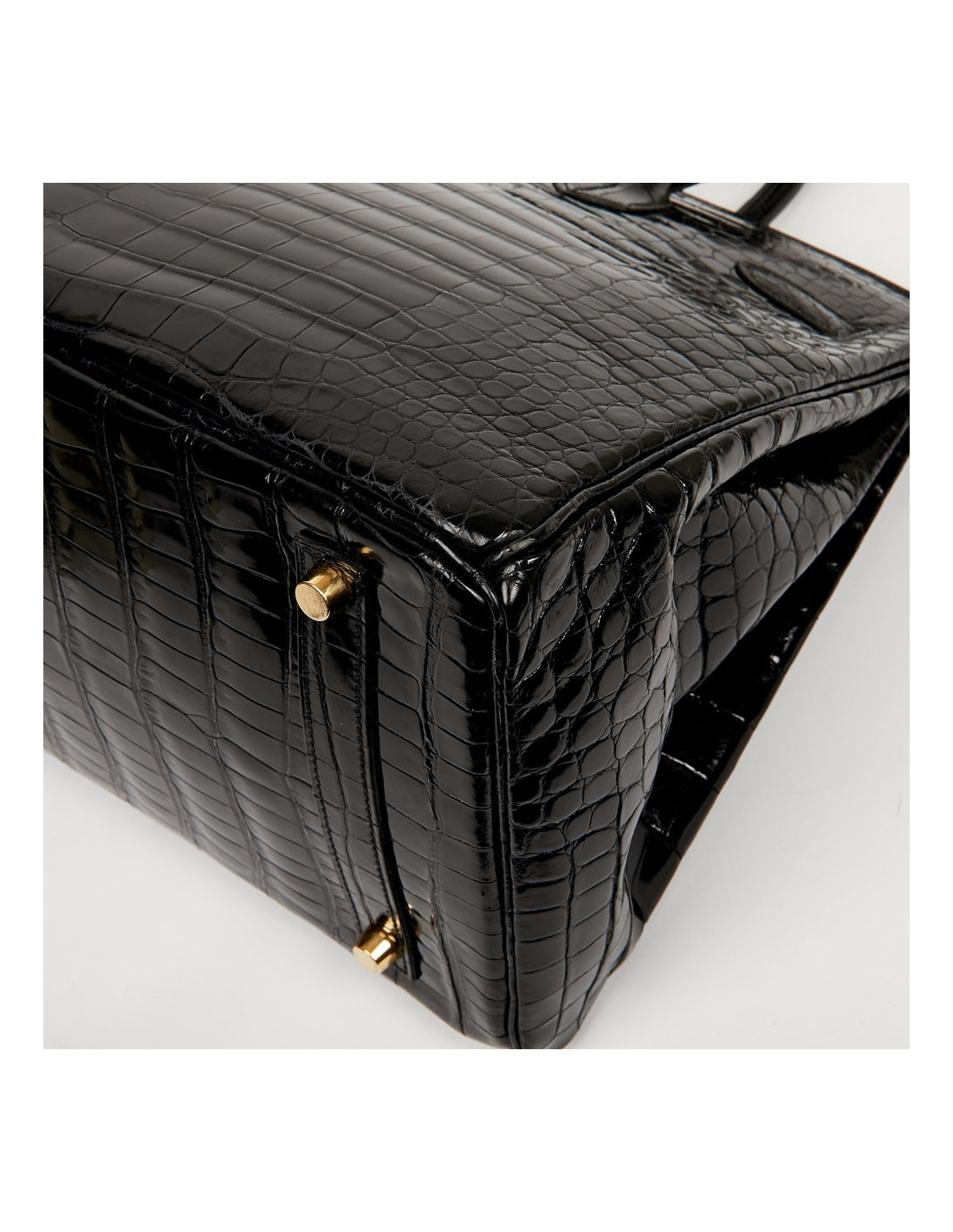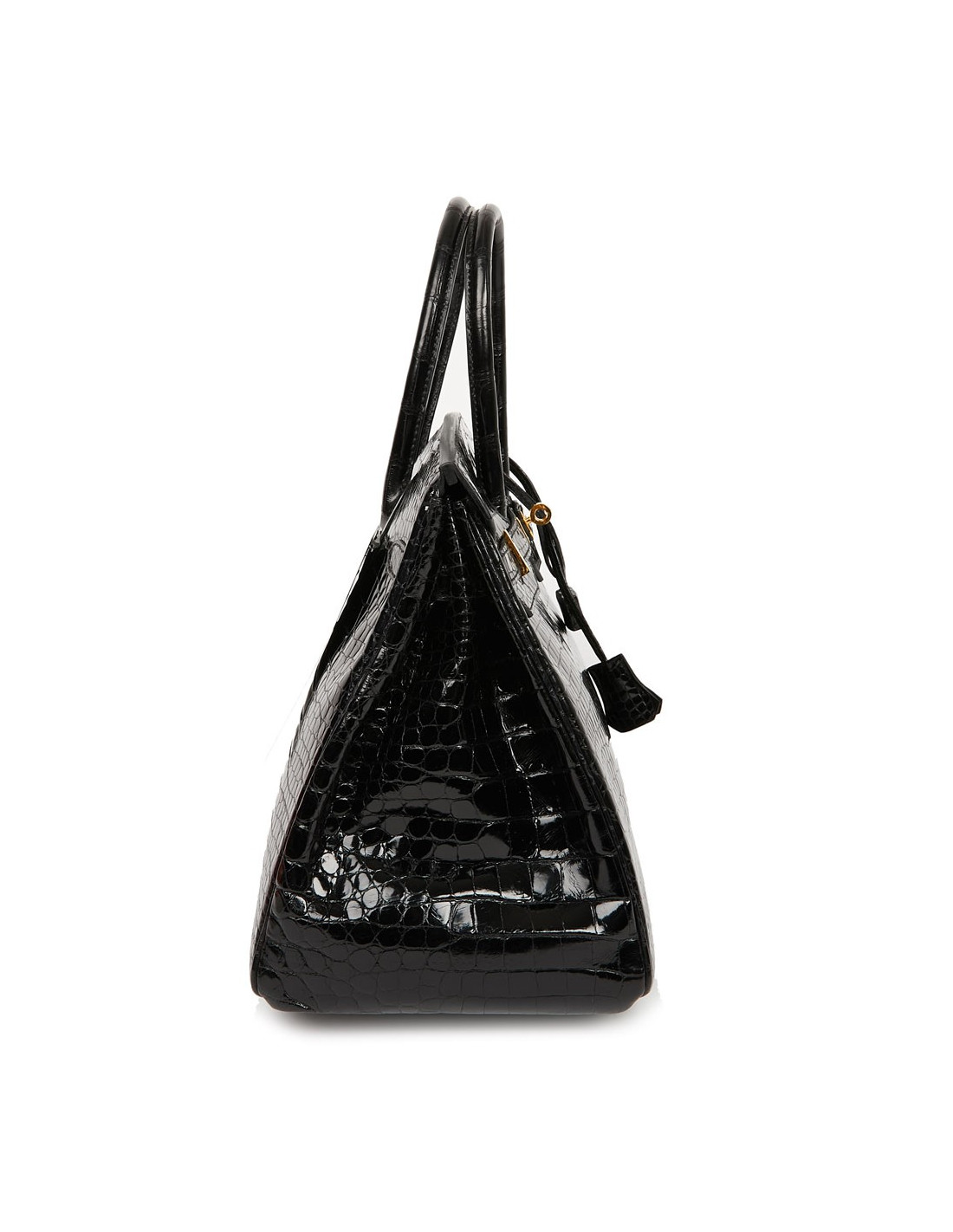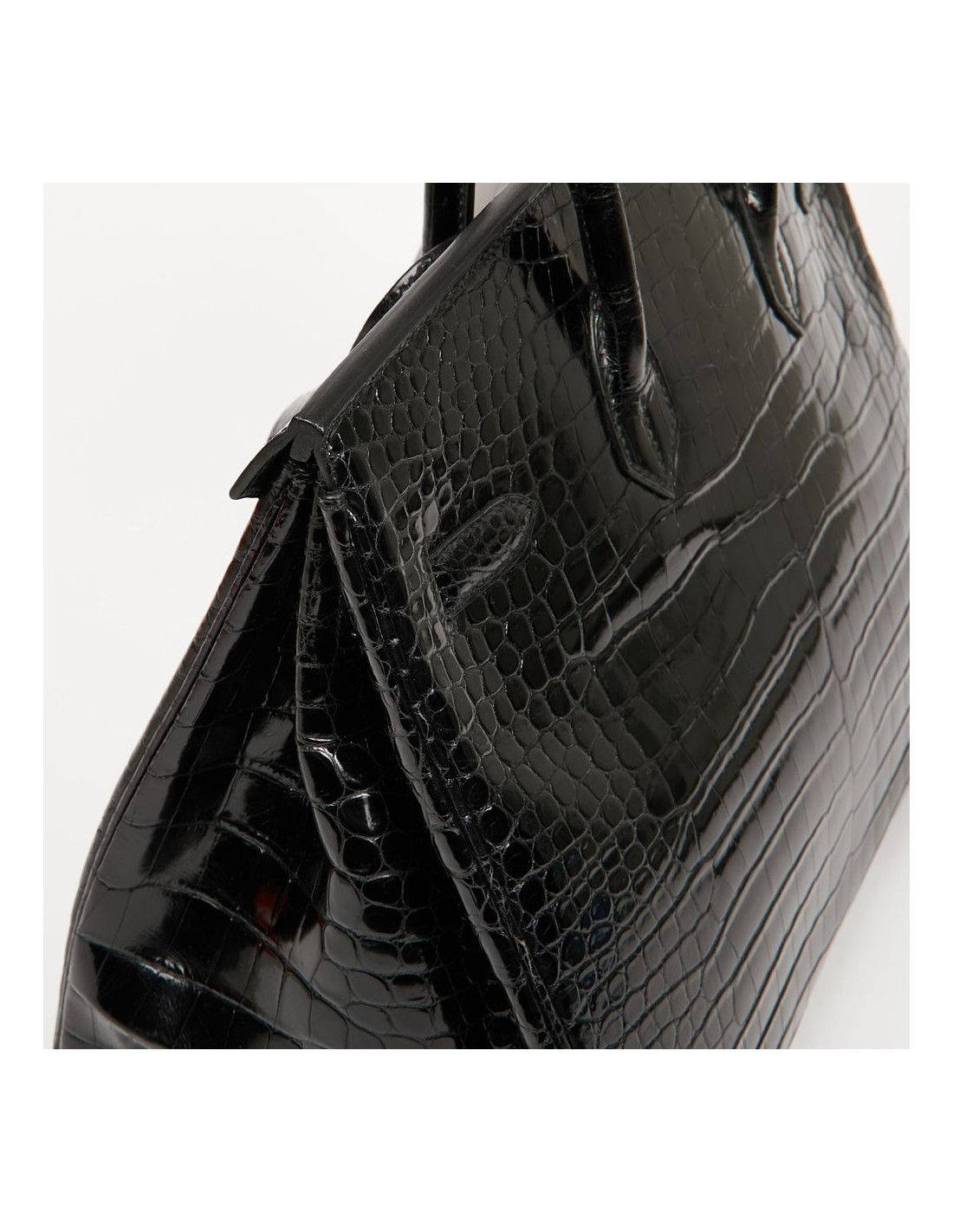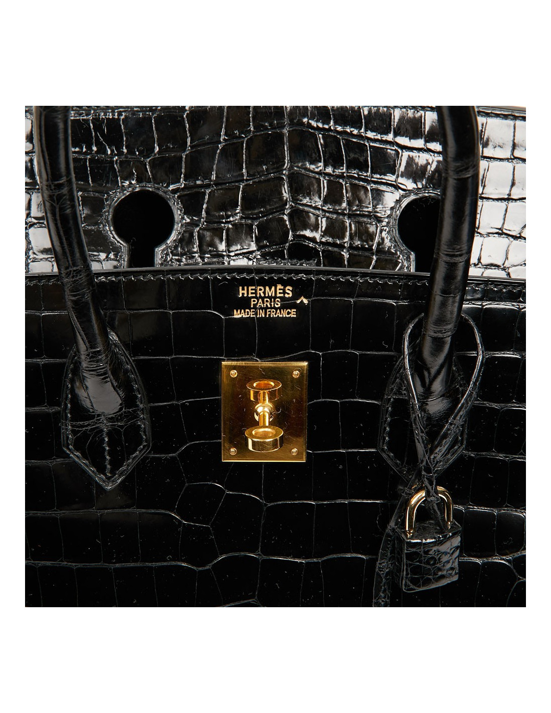 Beautiful Hermes handbag in shiny black Porosus crocodile.