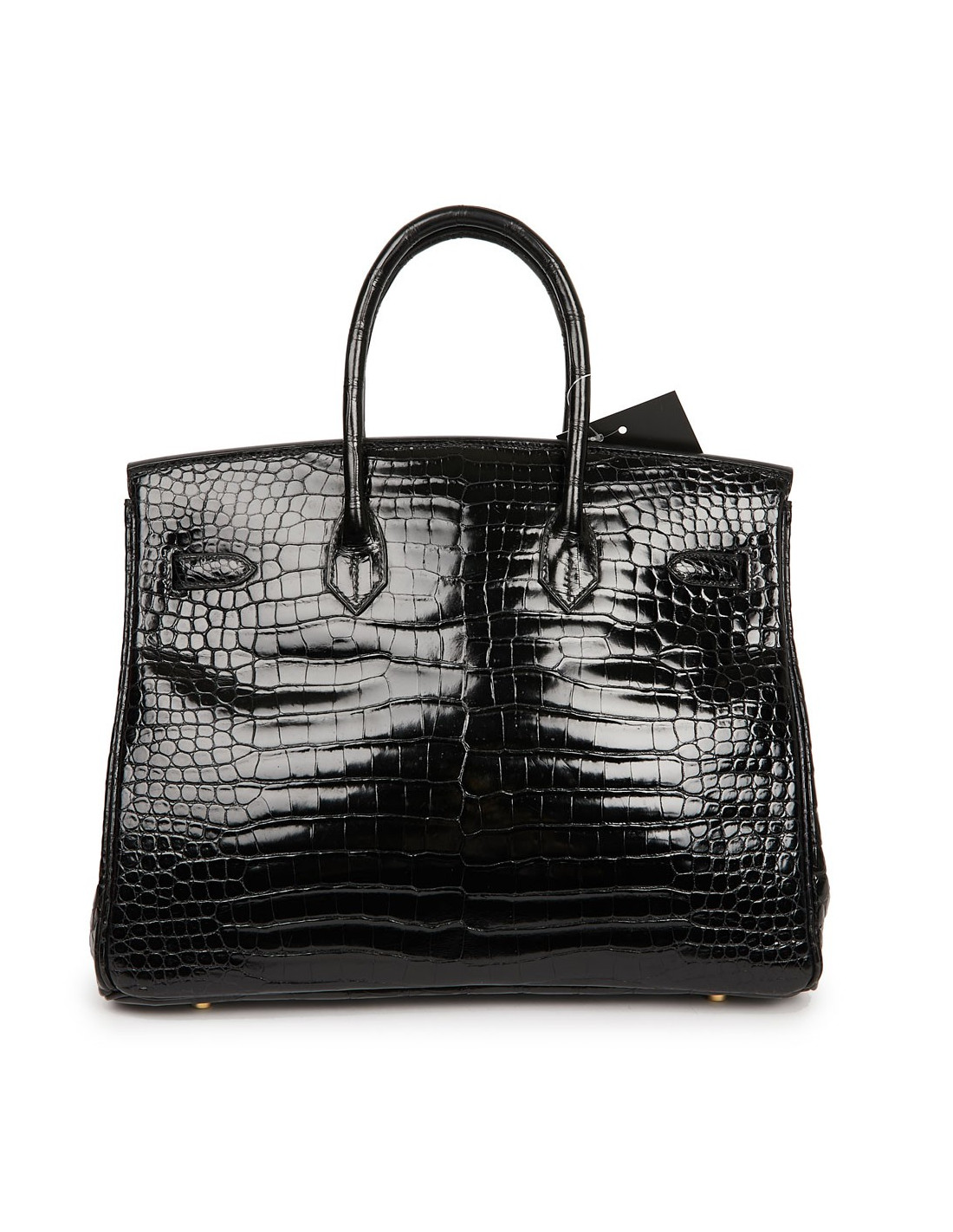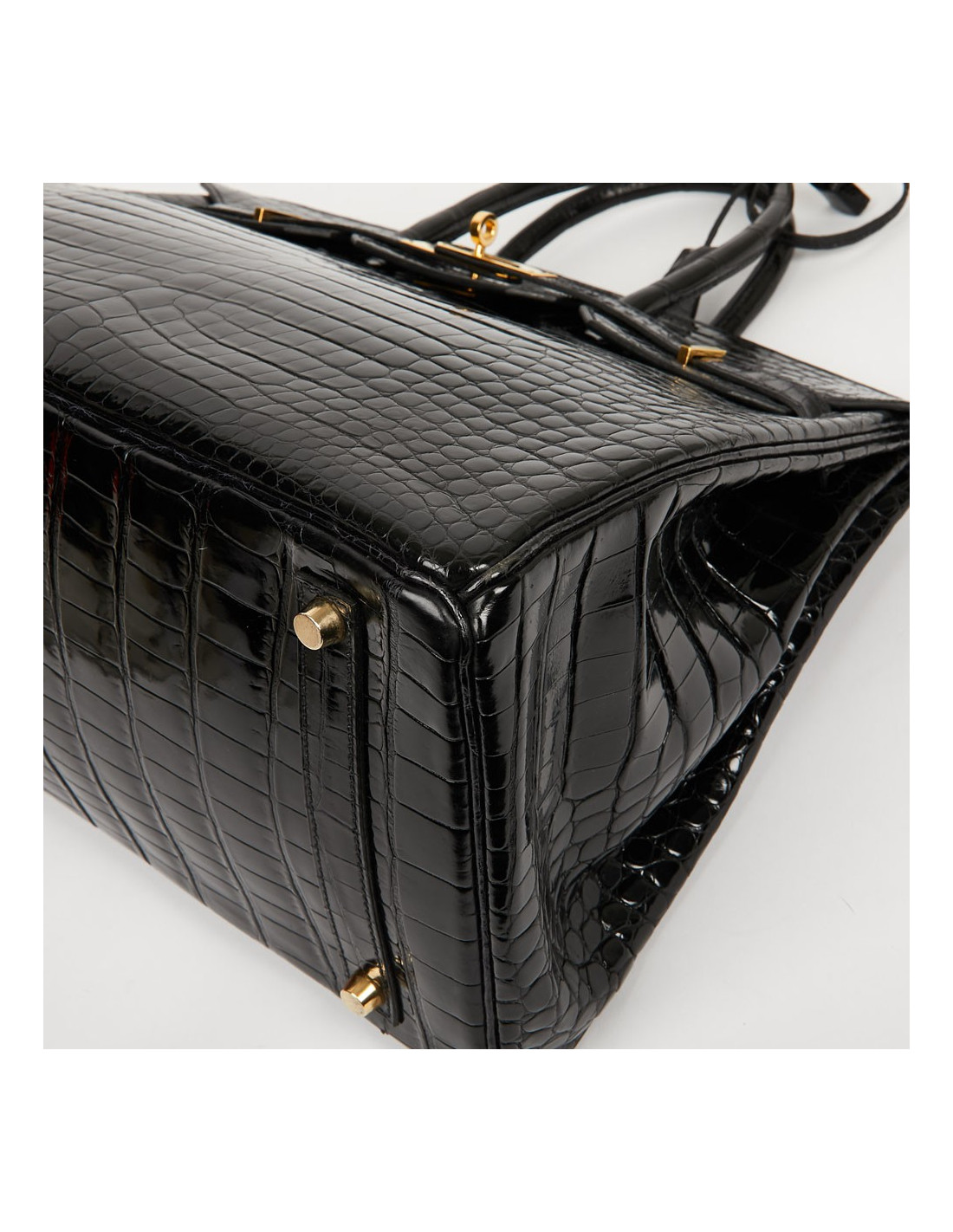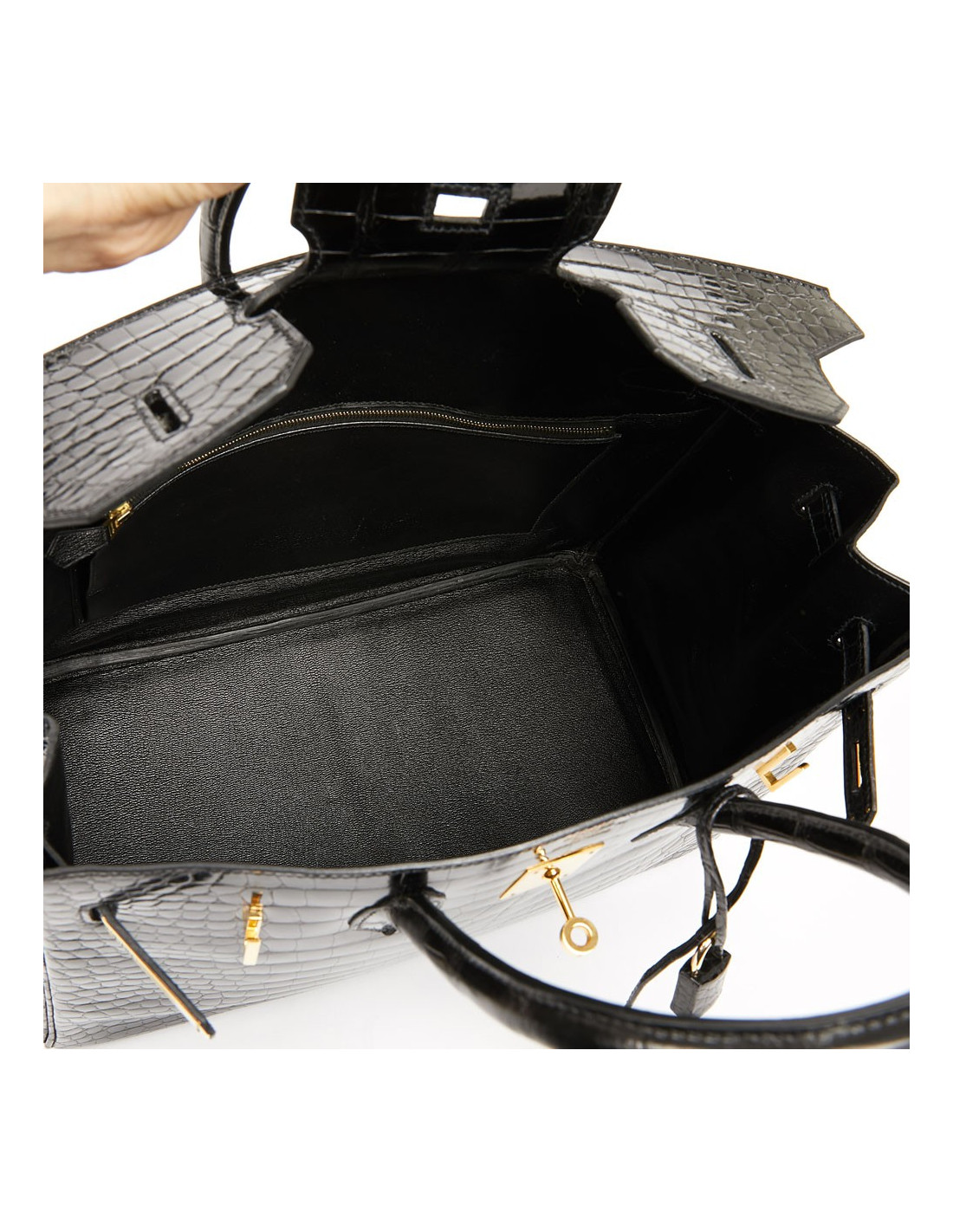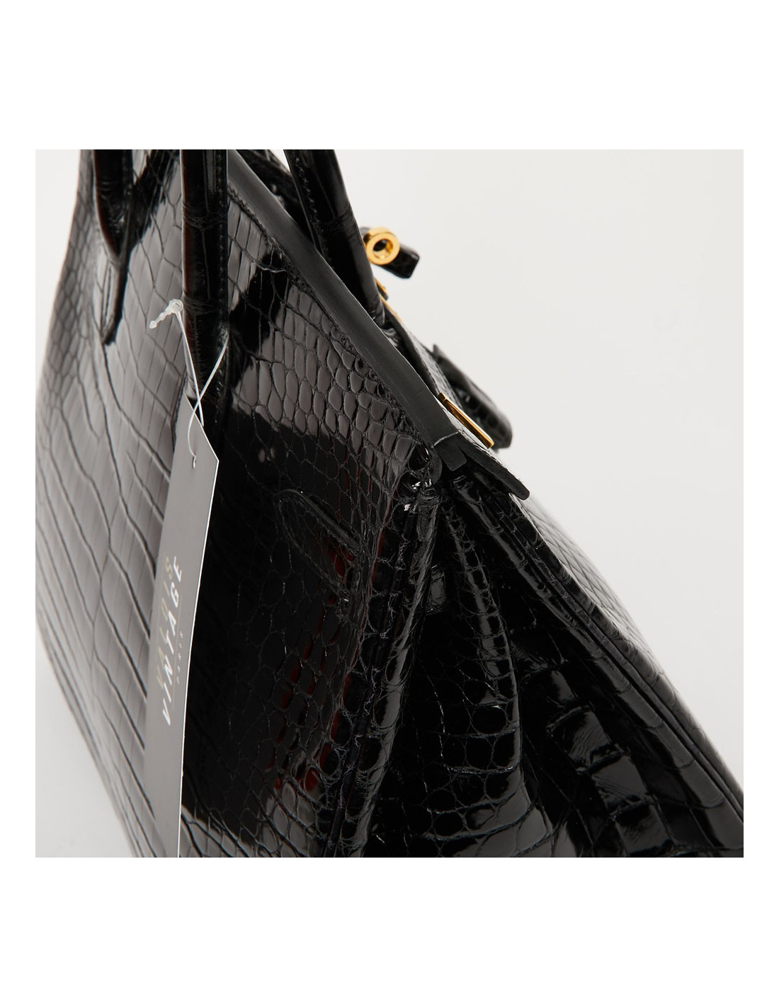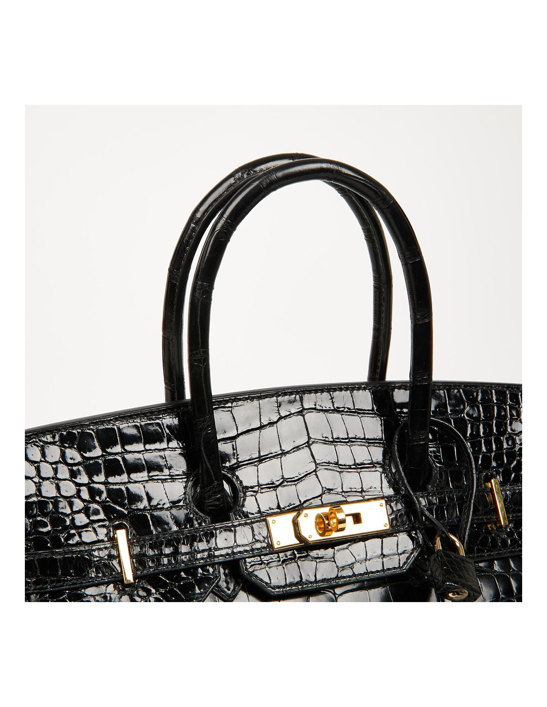 Beautiful Hermes handbag in shiny black Porosus crocodile.
