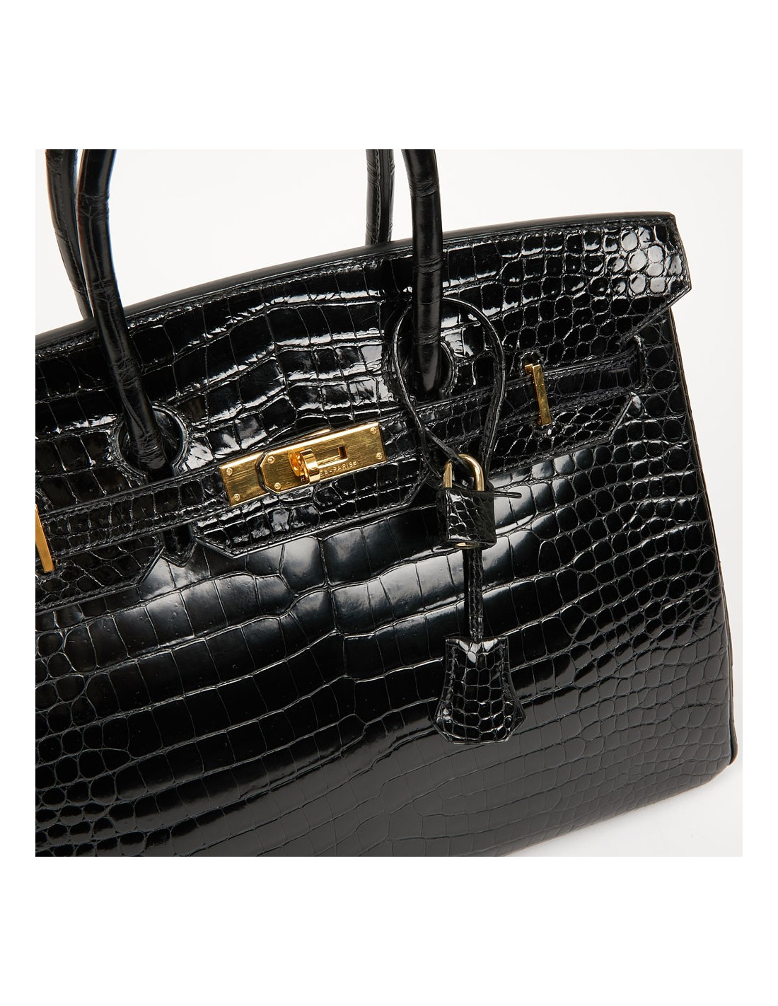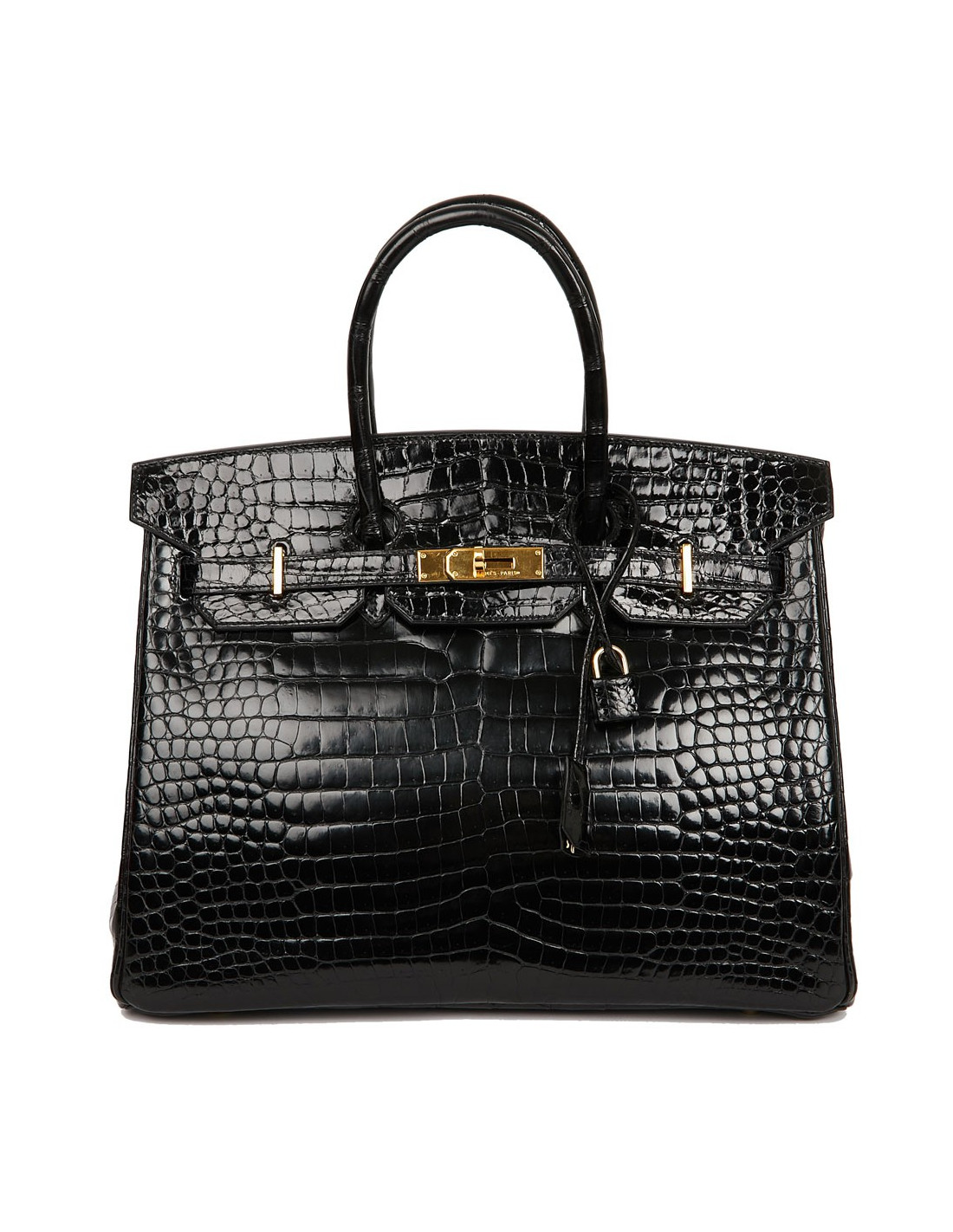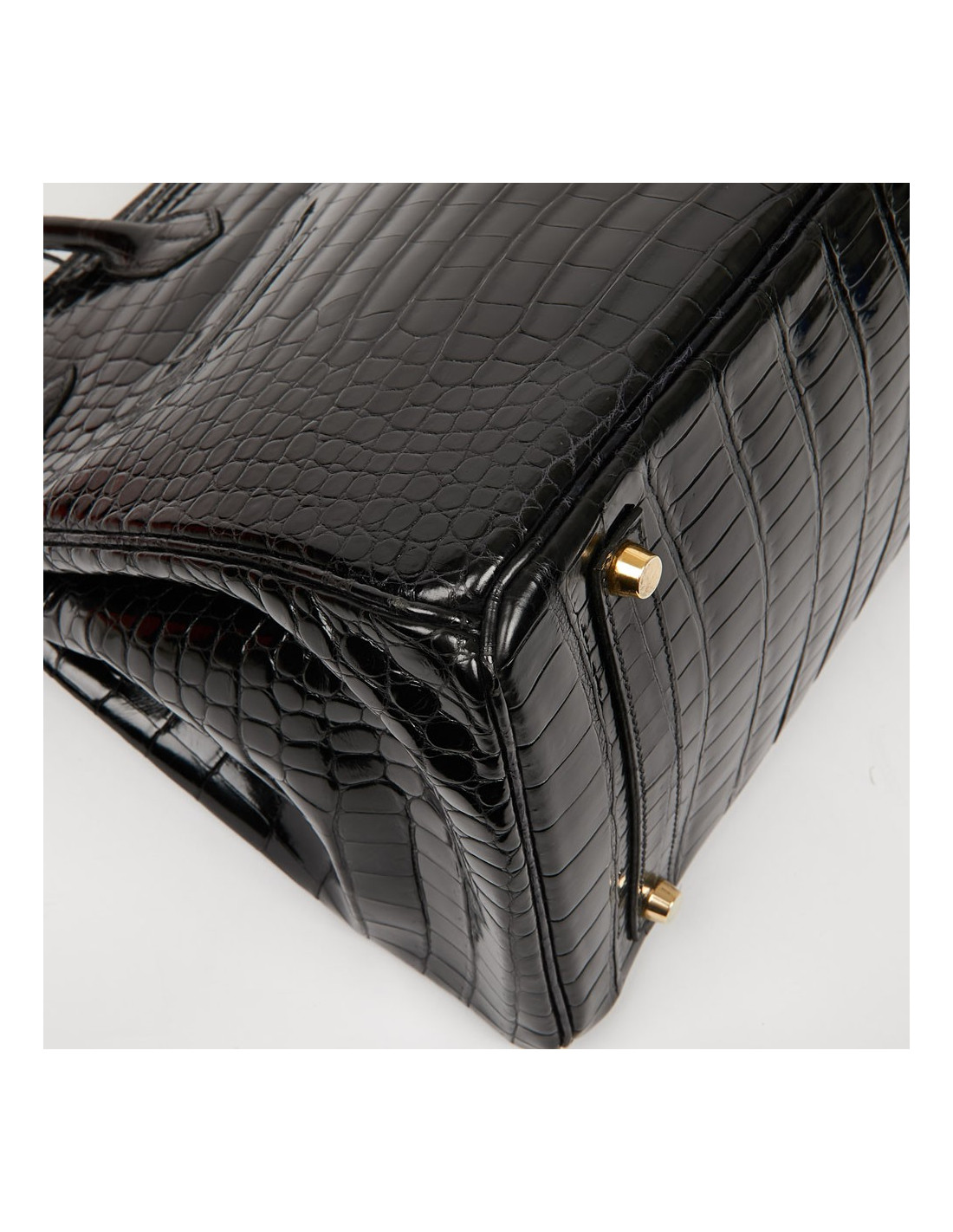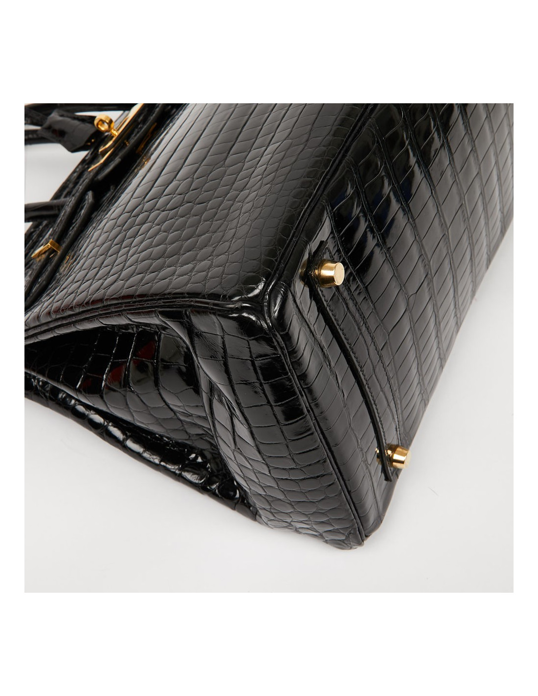 Beautiful Hermes handbag in shiny black Porosus crocodile.