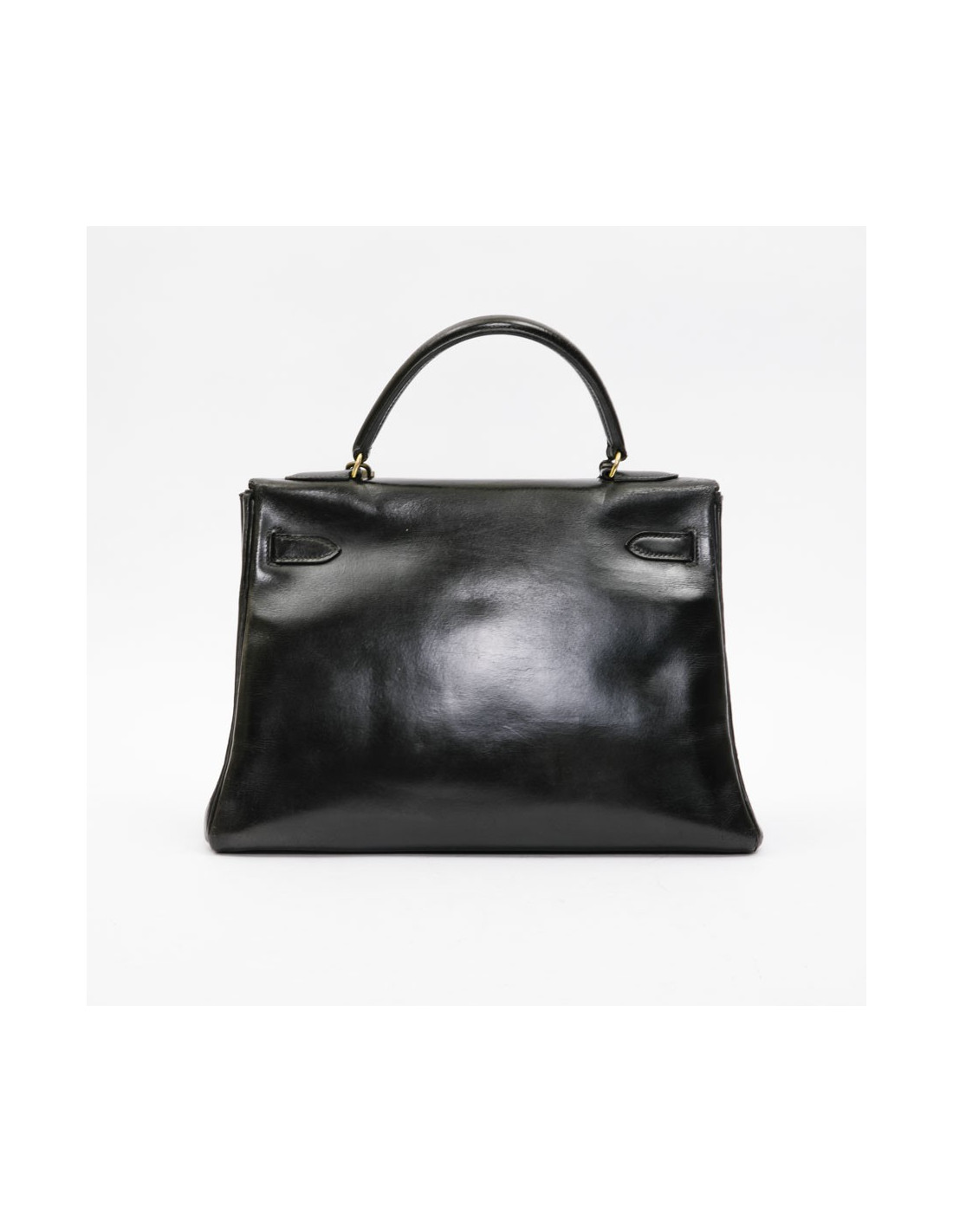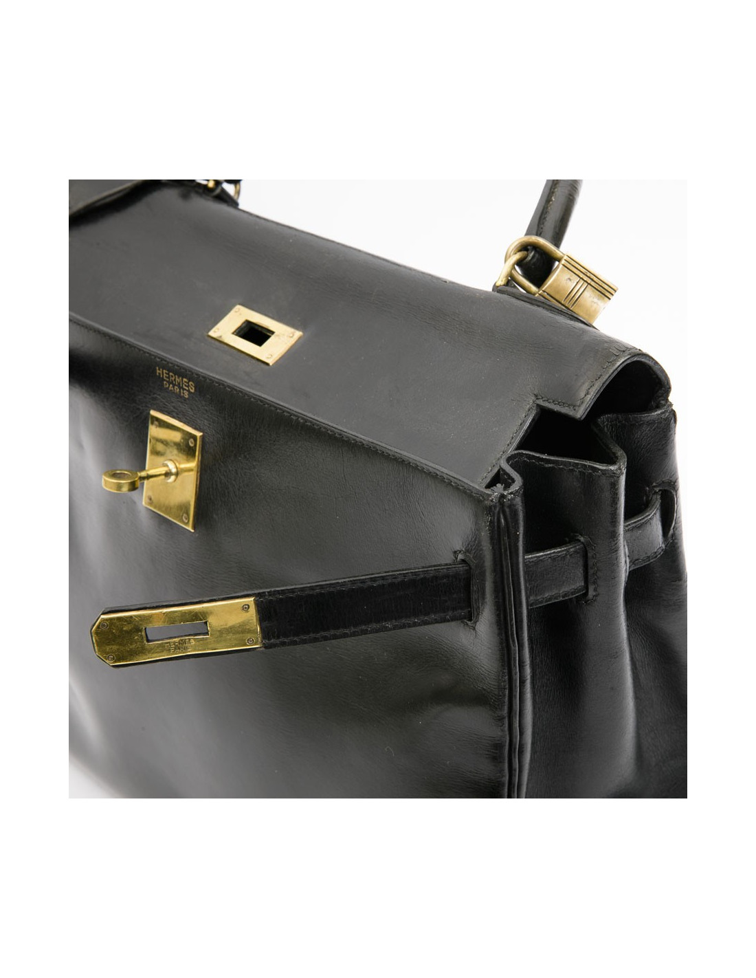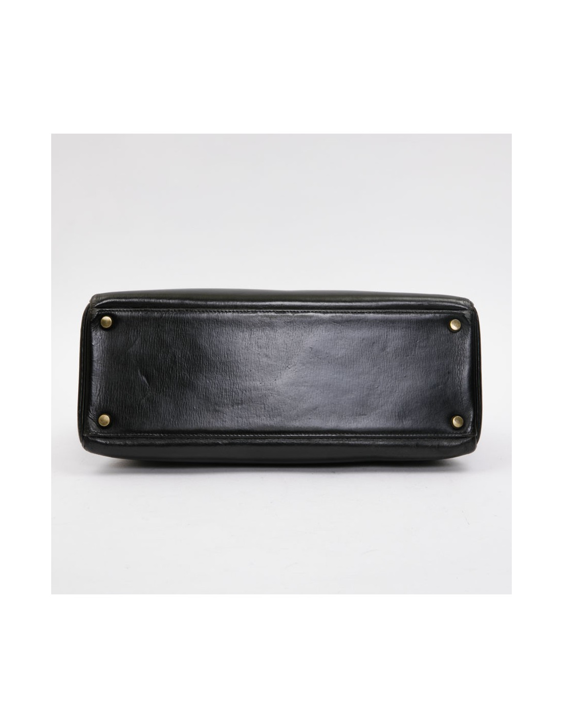 Hermes vintage 32 Kelly bag in black box leather. Gold metal hardware.