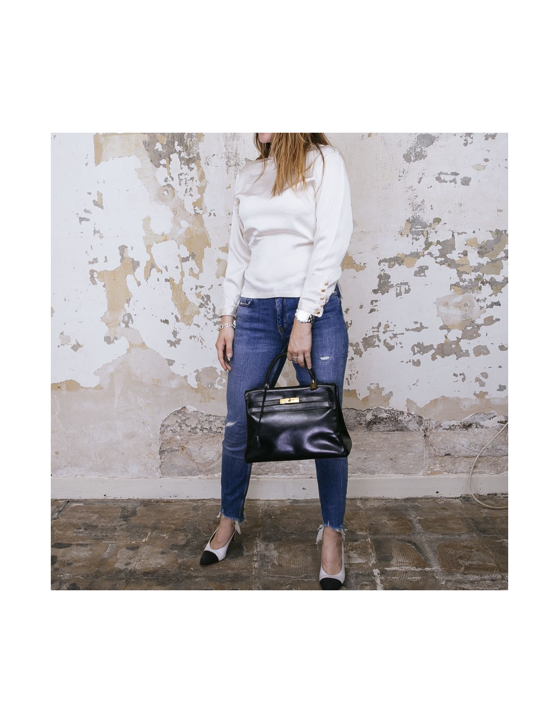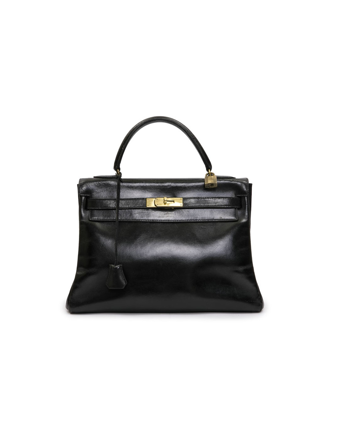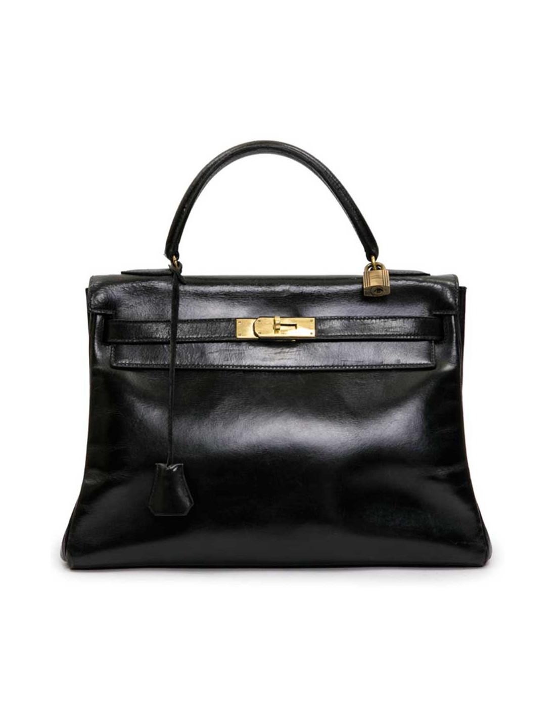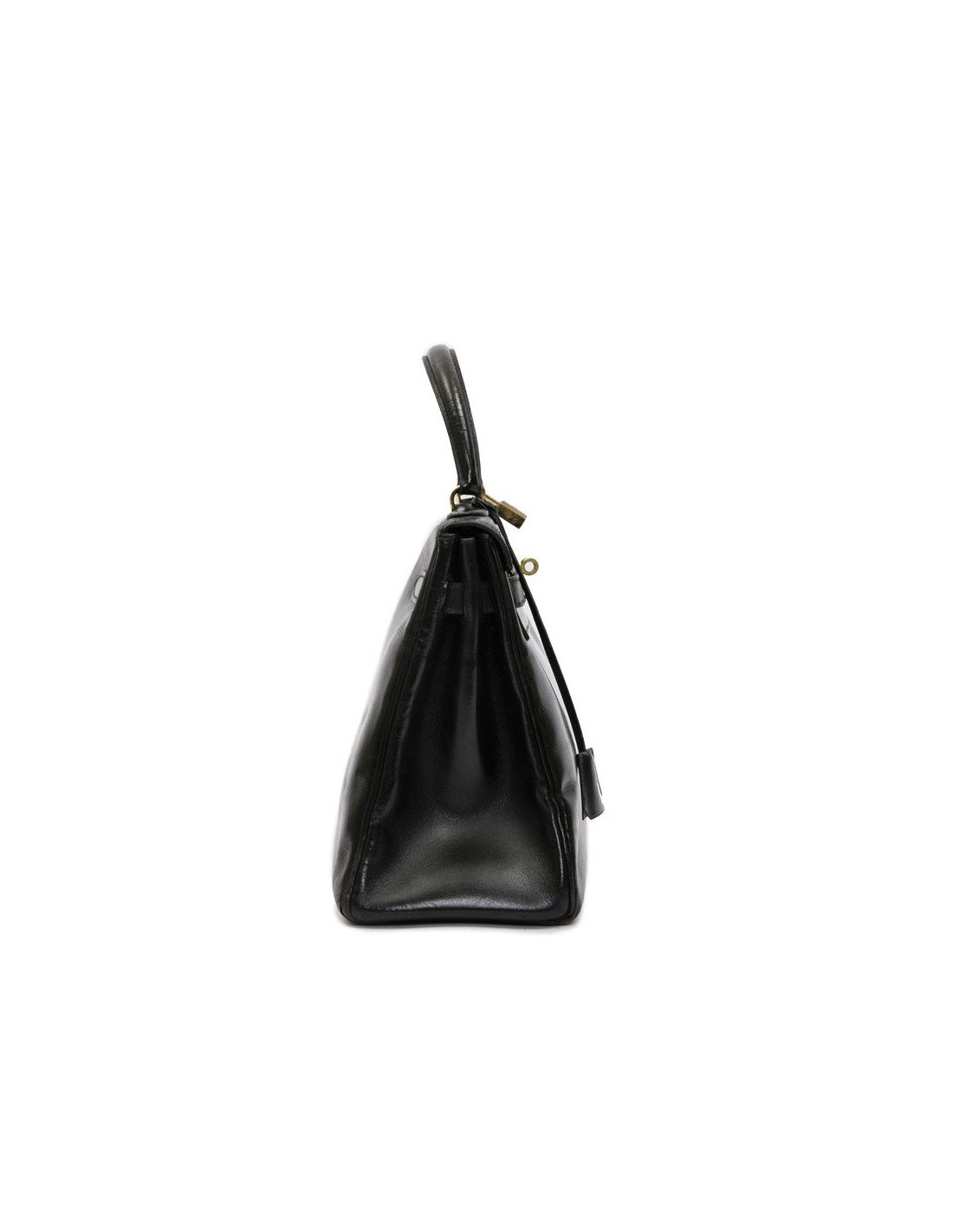 Hermes vintage 32 Kelly bag in black box leather. Gold metal hardware.