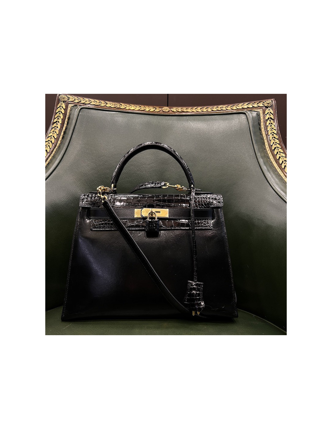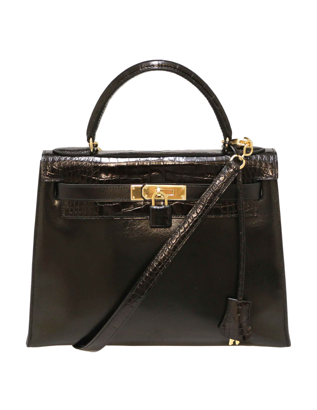 Hermes Kelly 28 sellier vintage Box leather and crocodile