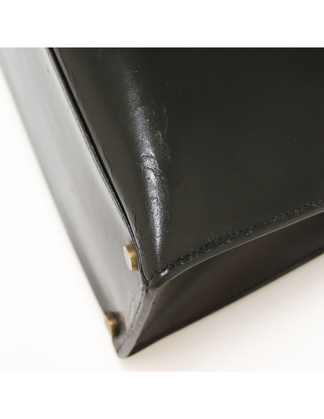 HERMES Kelly 28 Vintage black Box leather and crocodile