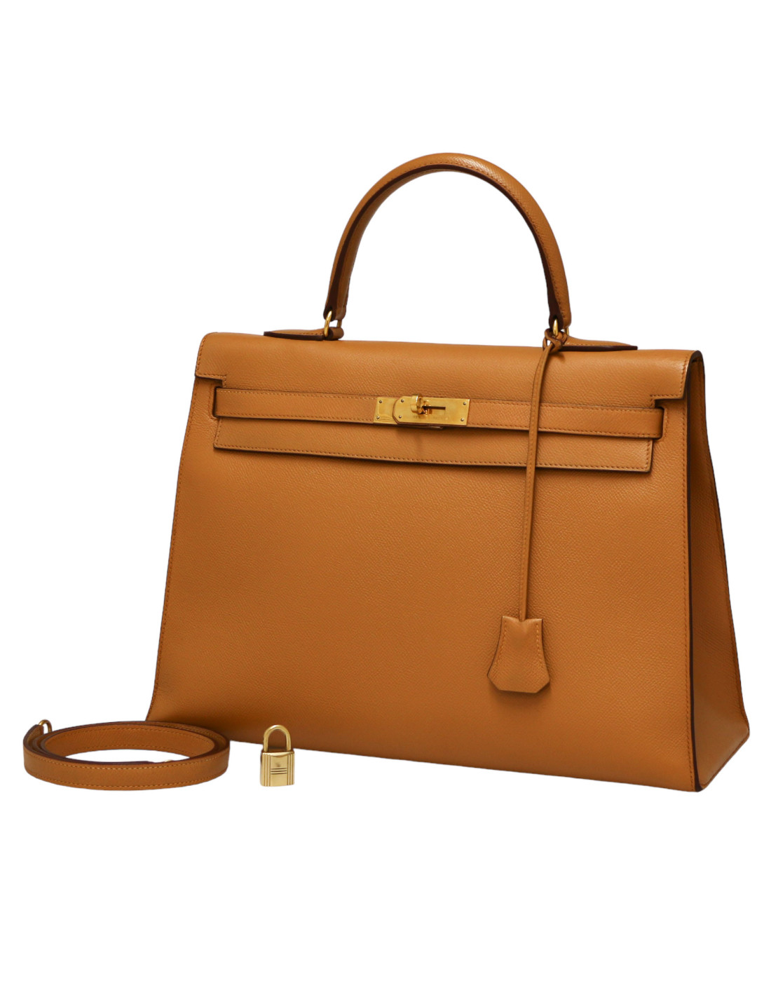 New Last items in stock HERMES KELLY Sac Kelly 35 cuir epsom Camel HERMES 42765 11,990.00 € Sac Hermès Kelly 35 vintageCondition: Good conditionCountry of manufacture: FranceModel: Kelly 35 SellierDimensions: 35 x 26 x 12.5 cmShoulder strap: 90 cmStamp: V in a circleYear: 1992Hardware: Gold-plated metal (micro scratches)Details: Discover timeless elegance with this Hermès Kelly 35 vintage bag dating from 1992, an iconic model highly sought after... Add to cart