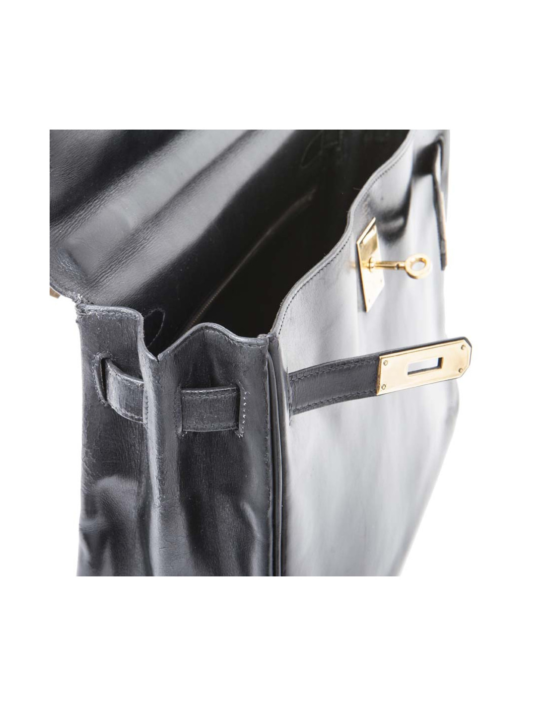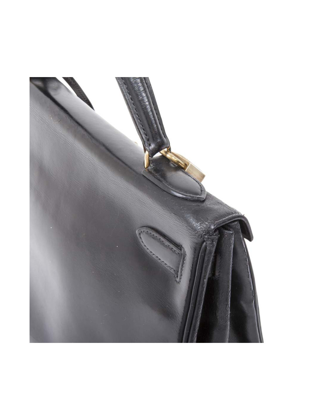 Hermès vintage Kelly 32 bag in black box leather. Stamp Z (year 1970).