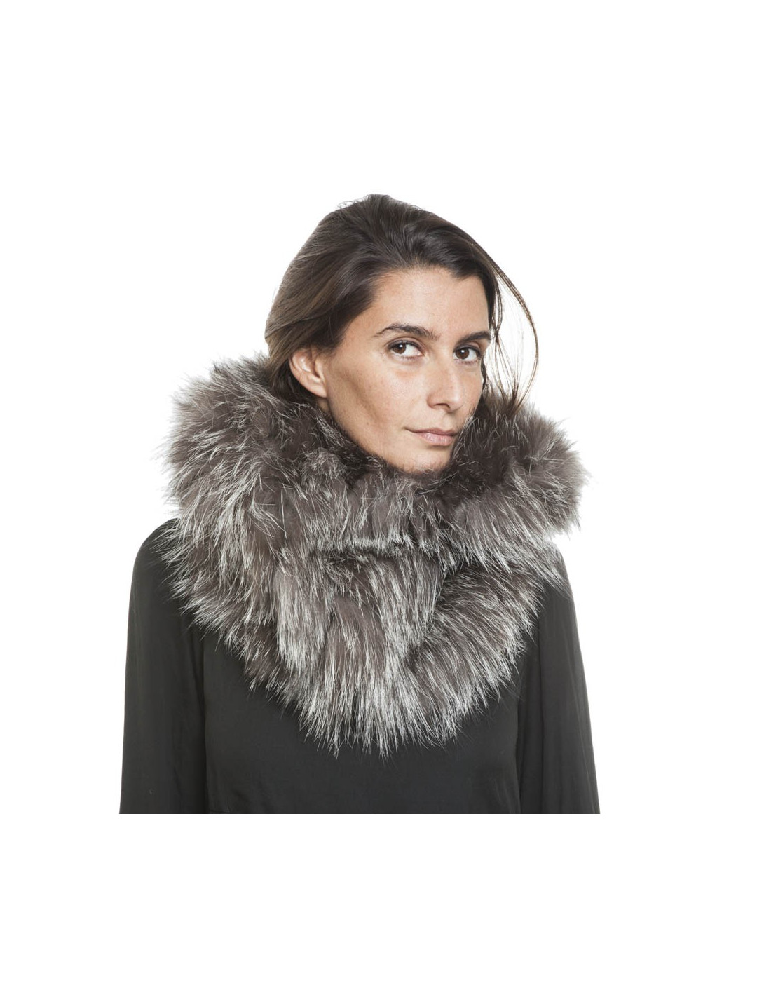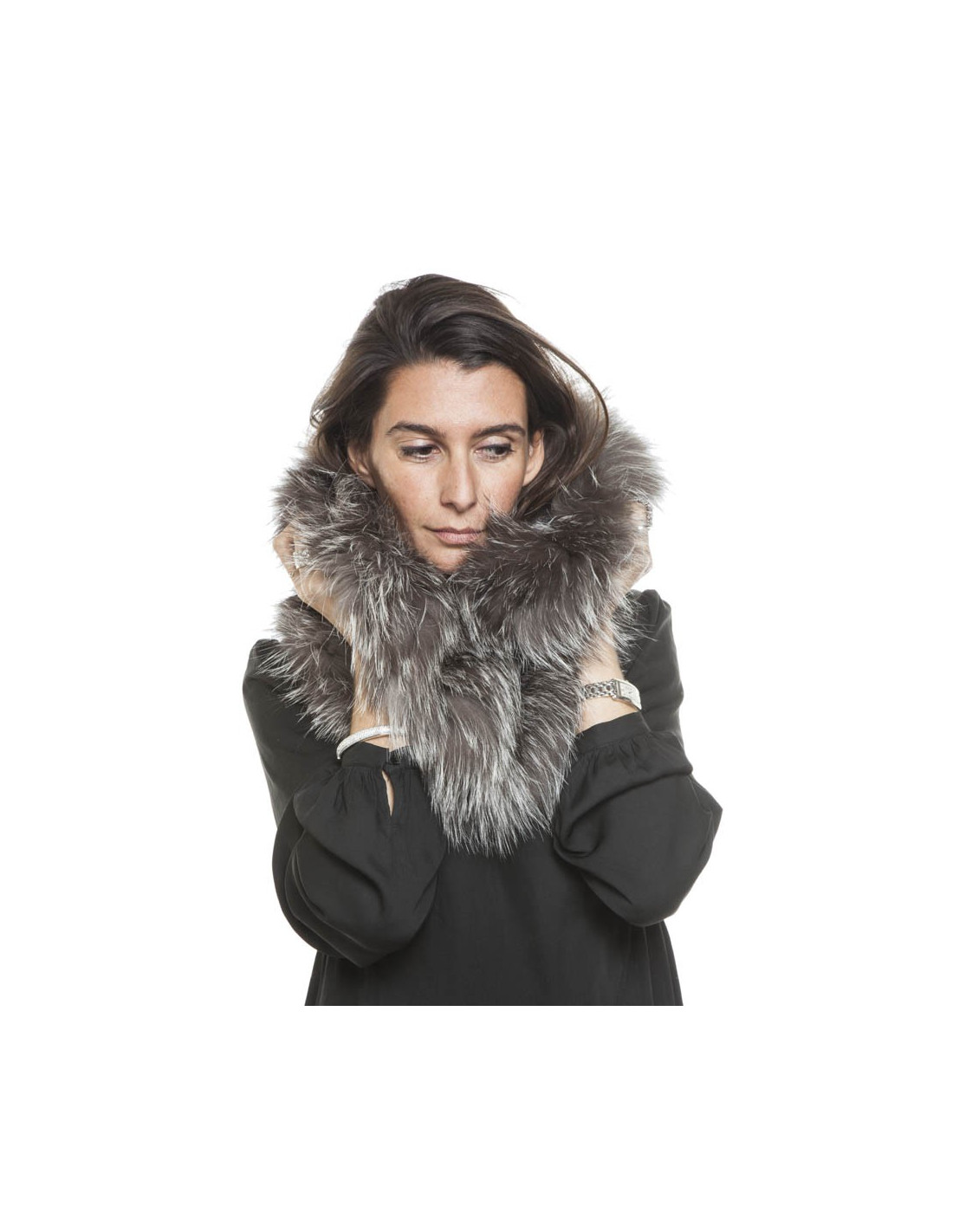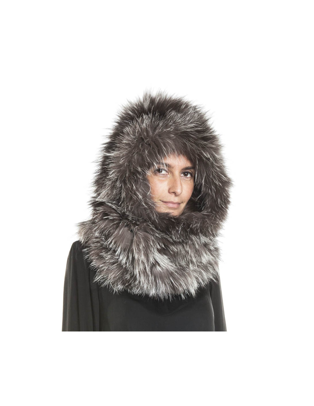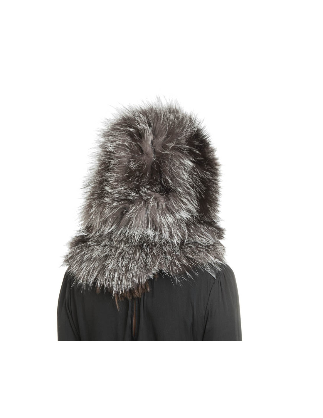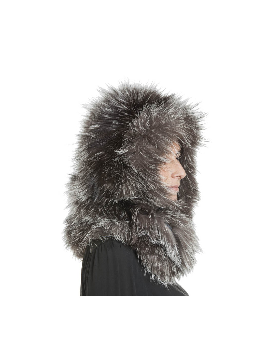 REVILLON hood in silver fox fur