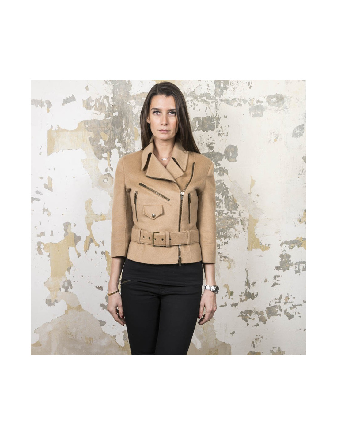 CELINE perfecto jacket in beige camel hair size 36FR
