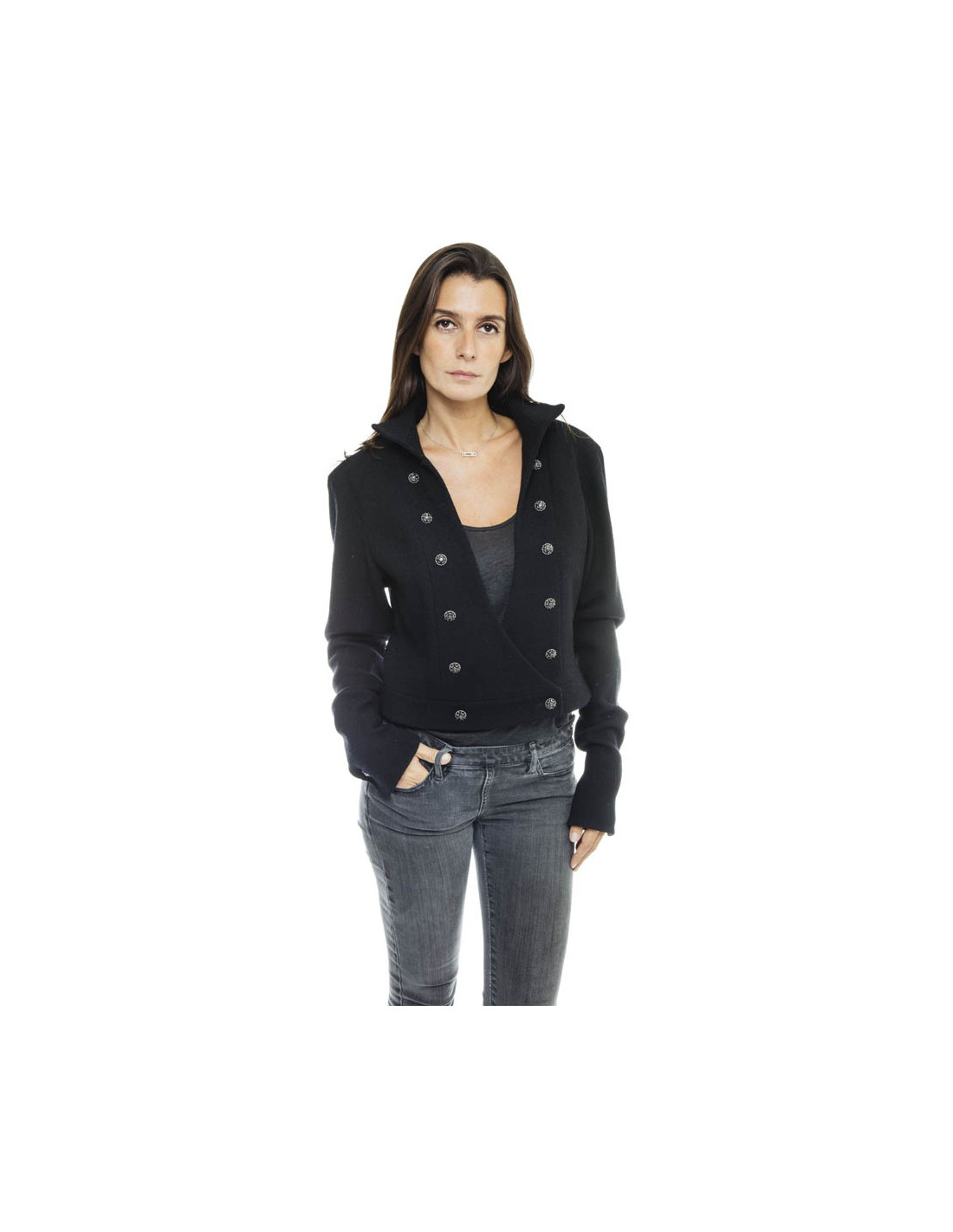 CHANEL spencer jacket in black wool size 42FR