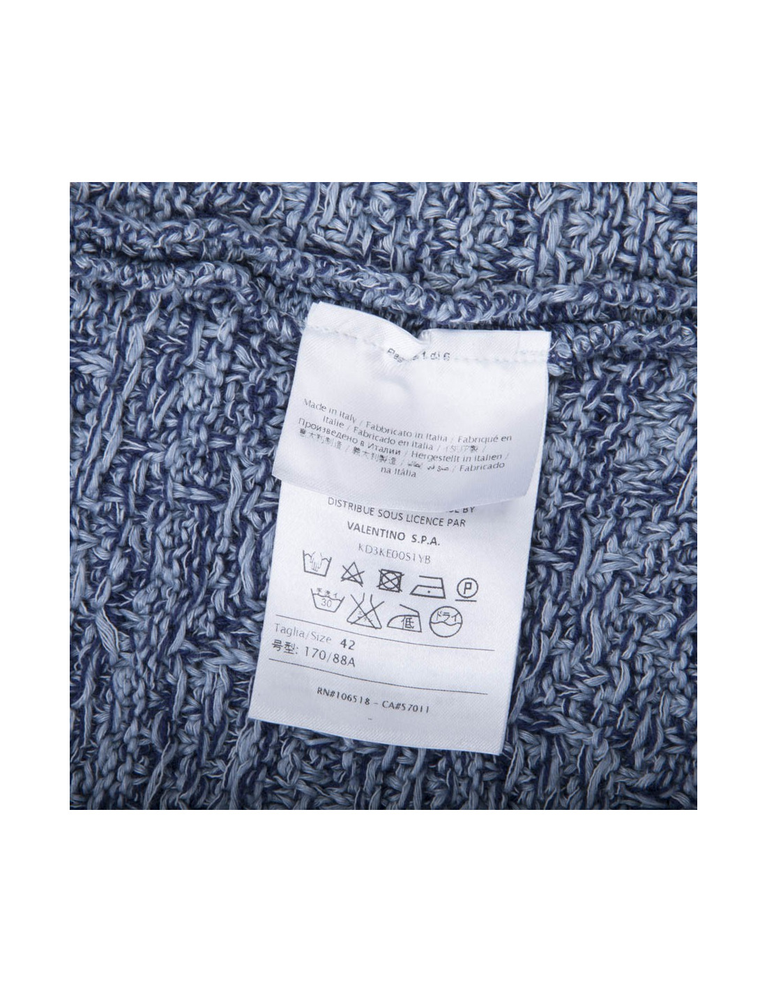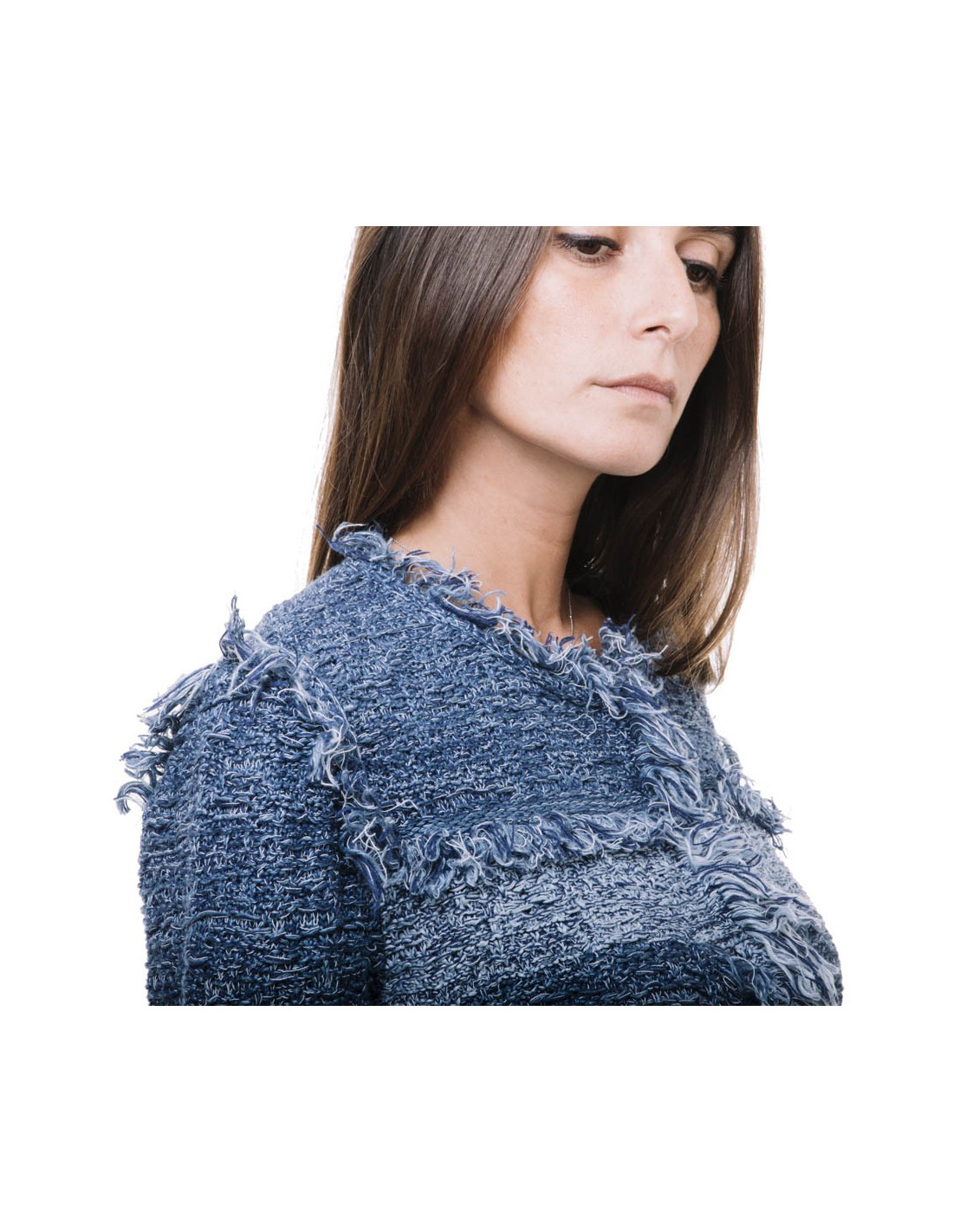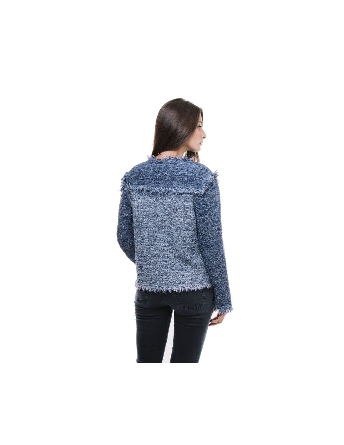 Missoni jacket in blue jeans linen and cotton tweed. 2 pocket prints on the chest. This jacket closes with 2 hooks invisible on the front.