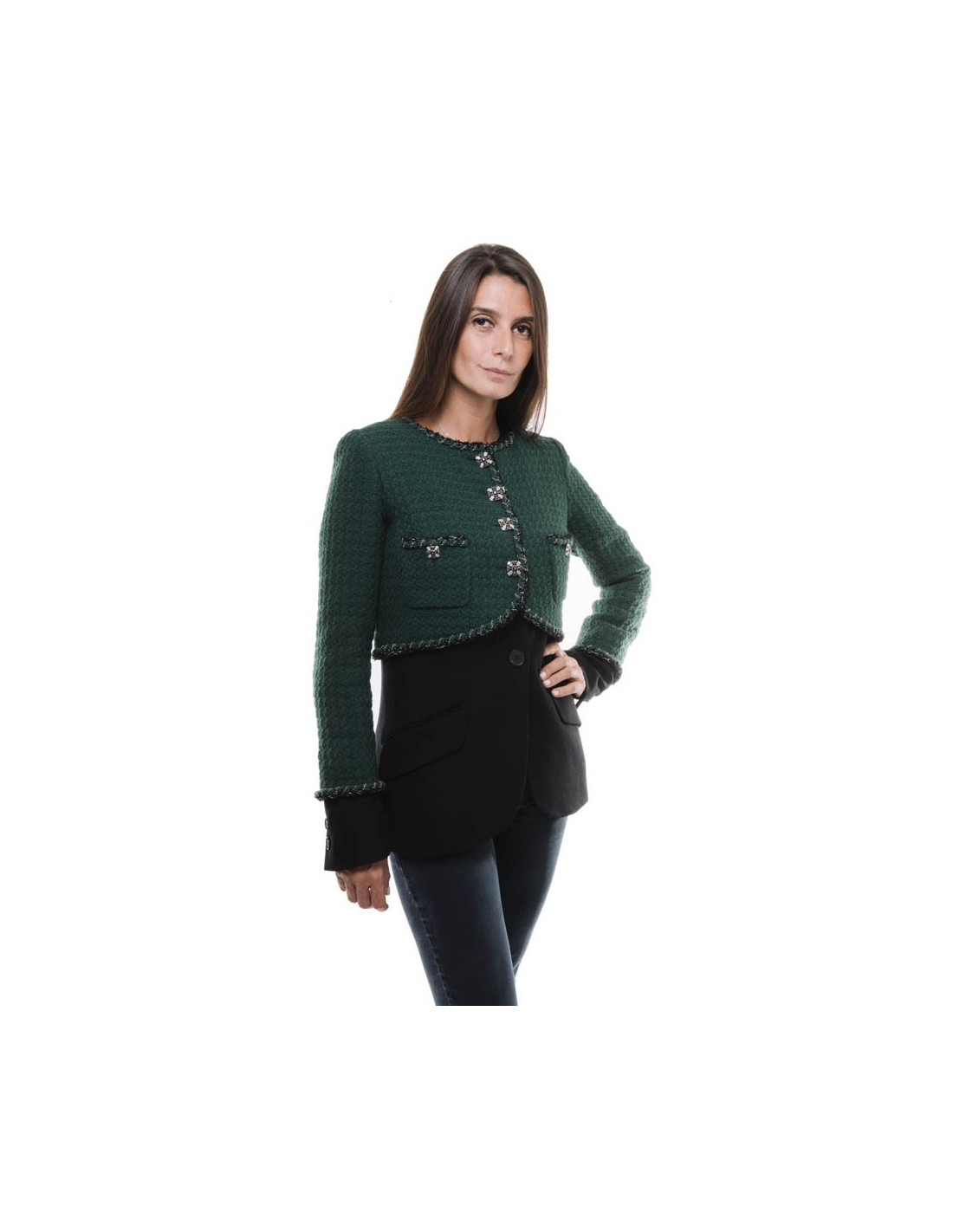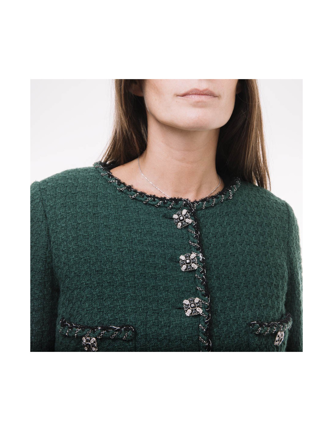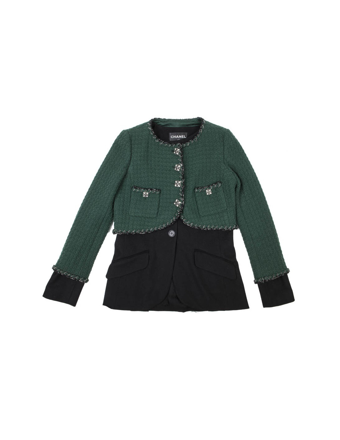 Last items in stock JACKETS CHANEL tweed jacket Size 46 FR CHANEL 33136 4,100.00 € Chanel black jacket Size 46 FR Condition : very goodMade in FranceSize : 46 FR (fits more like a 44FR)Materials : tweed, silkColors : black, white, green, blue, purpleButtons : green, silver, blackYear : Fall 2009 ready to wearMeasurements : shoulders: 42 cm, underbust: 56 cm, height: 64 cm, sleeve length: 52 cm, wrist: 30 cmDetails: black silk monogram... Add to cart