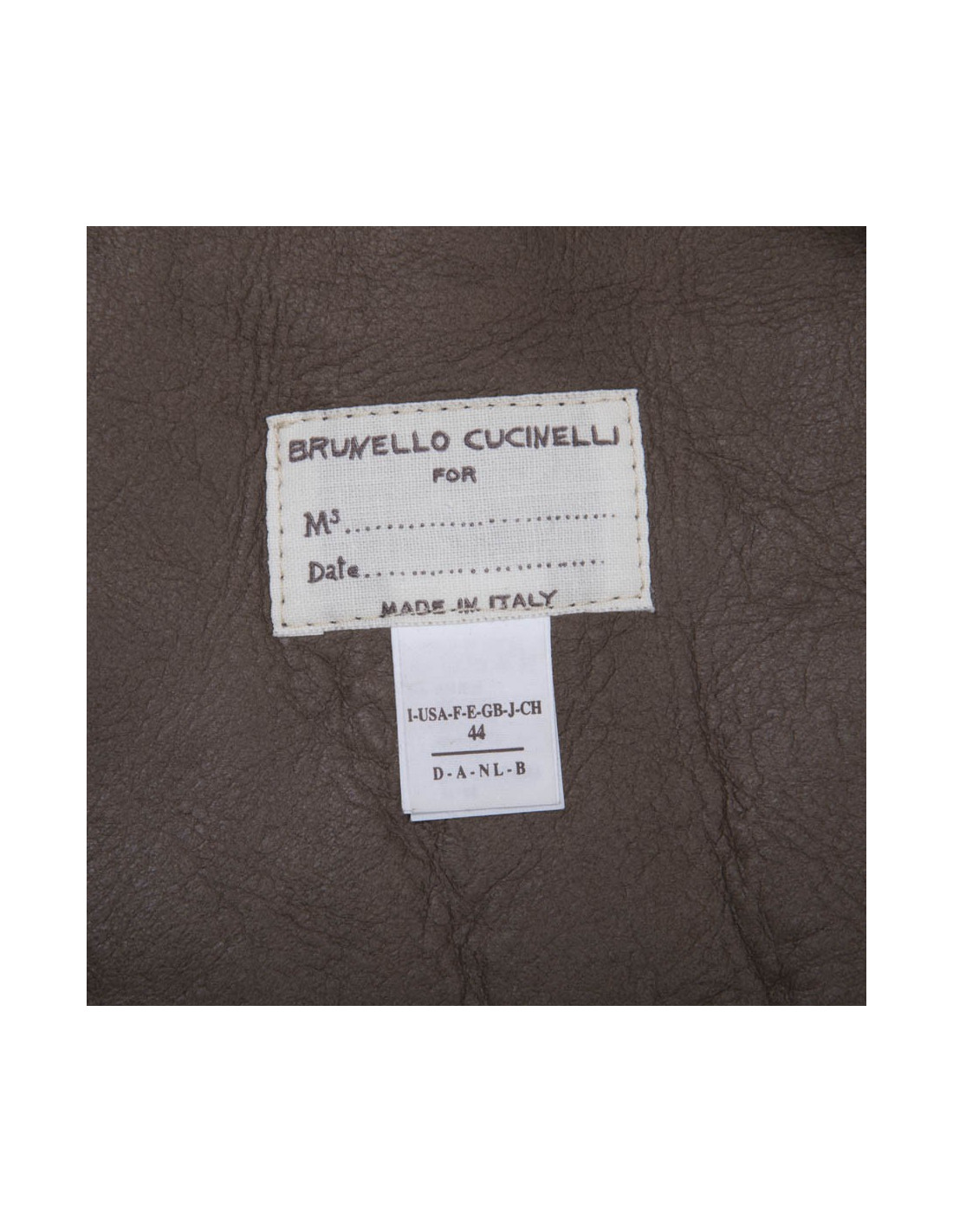 Superb Brunello Cucinelli sleeveless jacket in gray turned sheep skin and brown embroidery. Collar and the edges are in fox. It has 2 pockets closing by snaps. Size 44 It / T 40 Fr