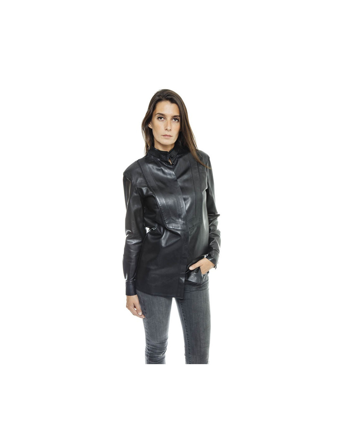 Givenchy black lamb leather blouse.