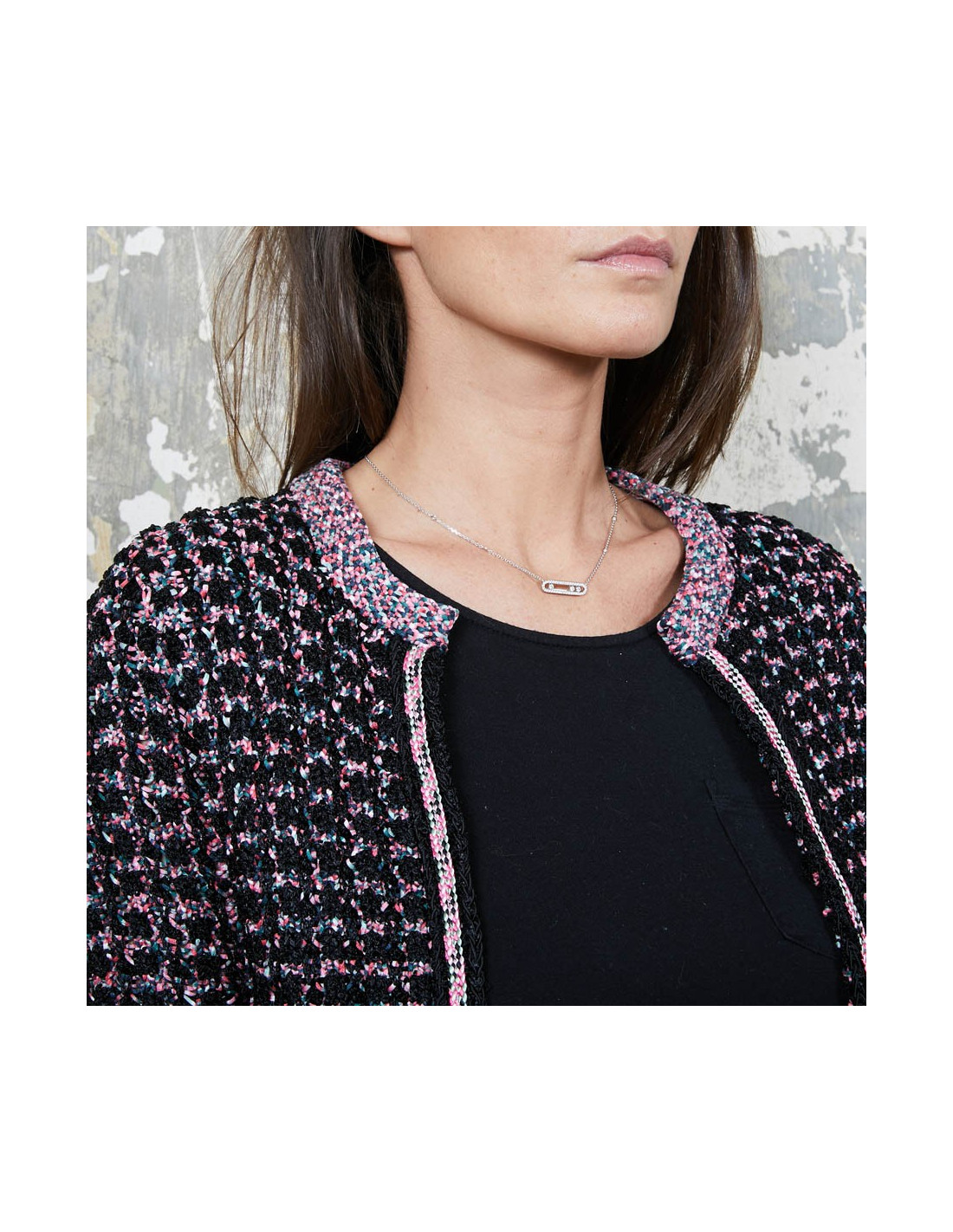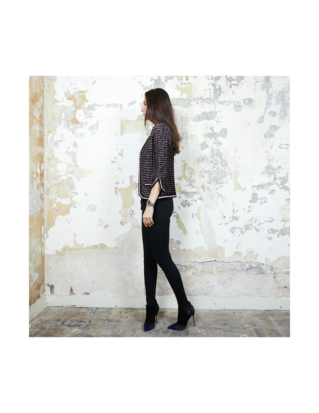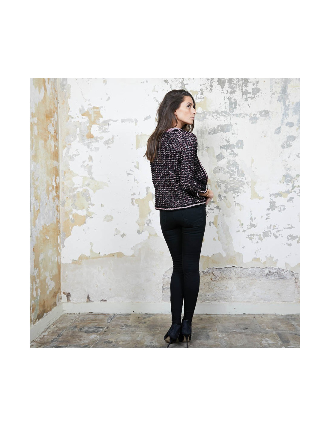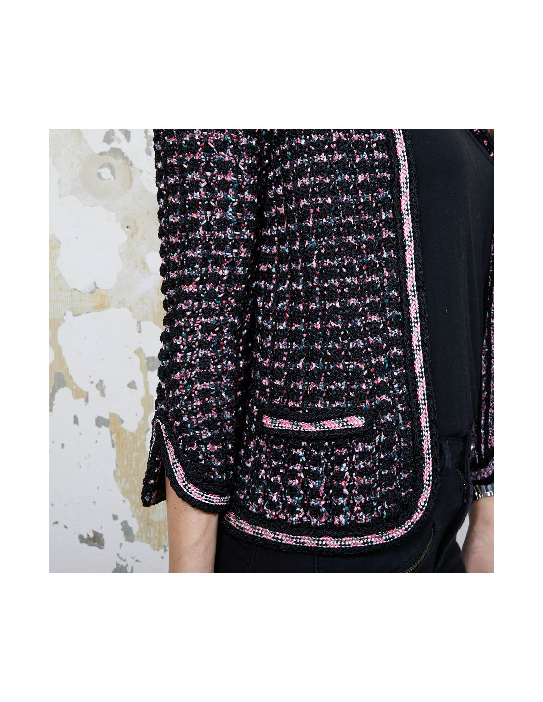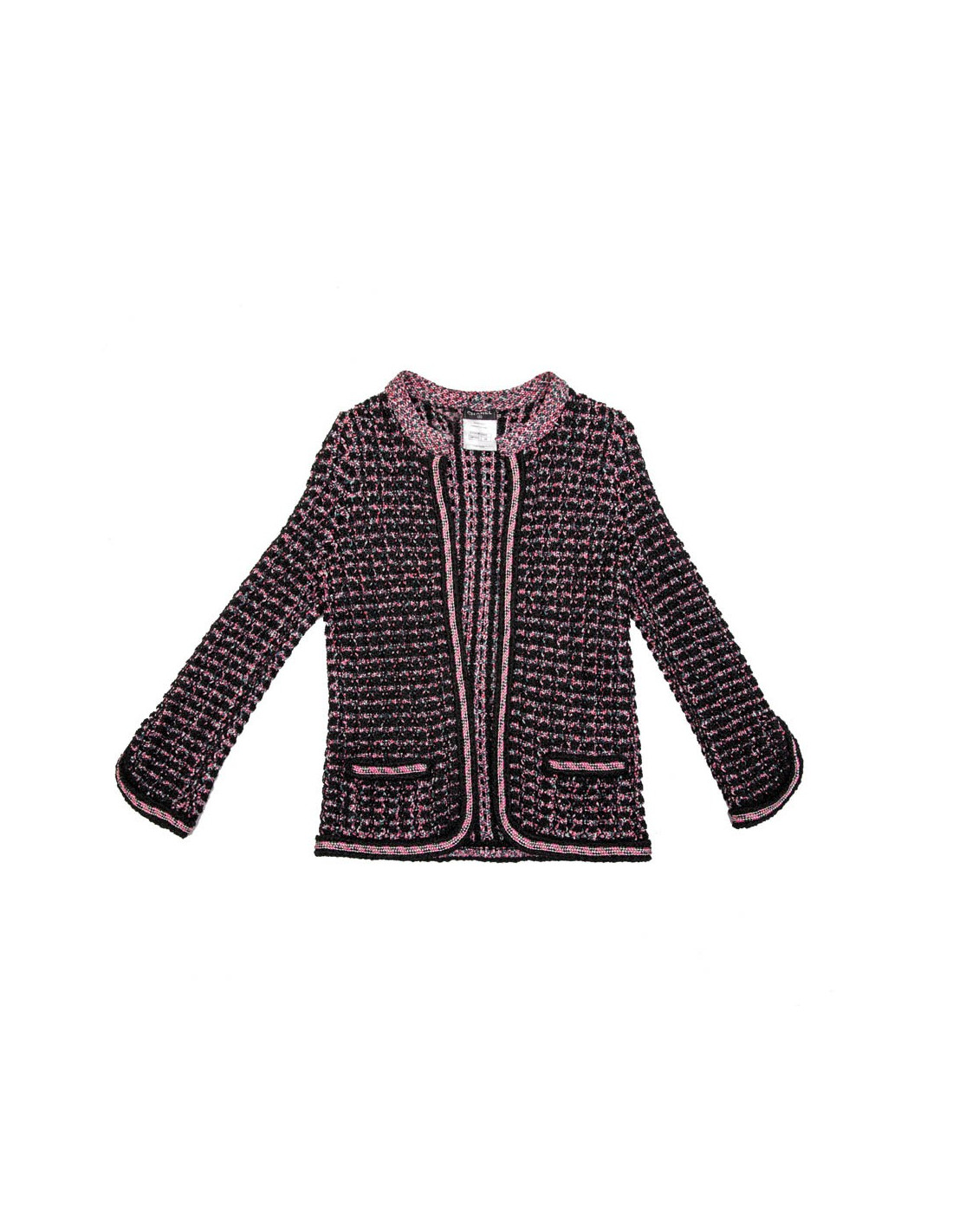Last items in stock JACKETS CHANEL T 38 Brown tweed jacket CHANEL 20034 1,790.00 € CHANEL T38 brown tweed jacket and black wool. It has 2 front pockets and closes with 3 transparent resin buttons with CC logo in black metal.The lining is in black silk with Camélia, CC and the Chanel signature.In very good condition.Made in France.Flat dimensions: shoulder width 43 cm. chest 46cm. sleeve length 52 cm, total height: 61 cm, width of the... Add to cart