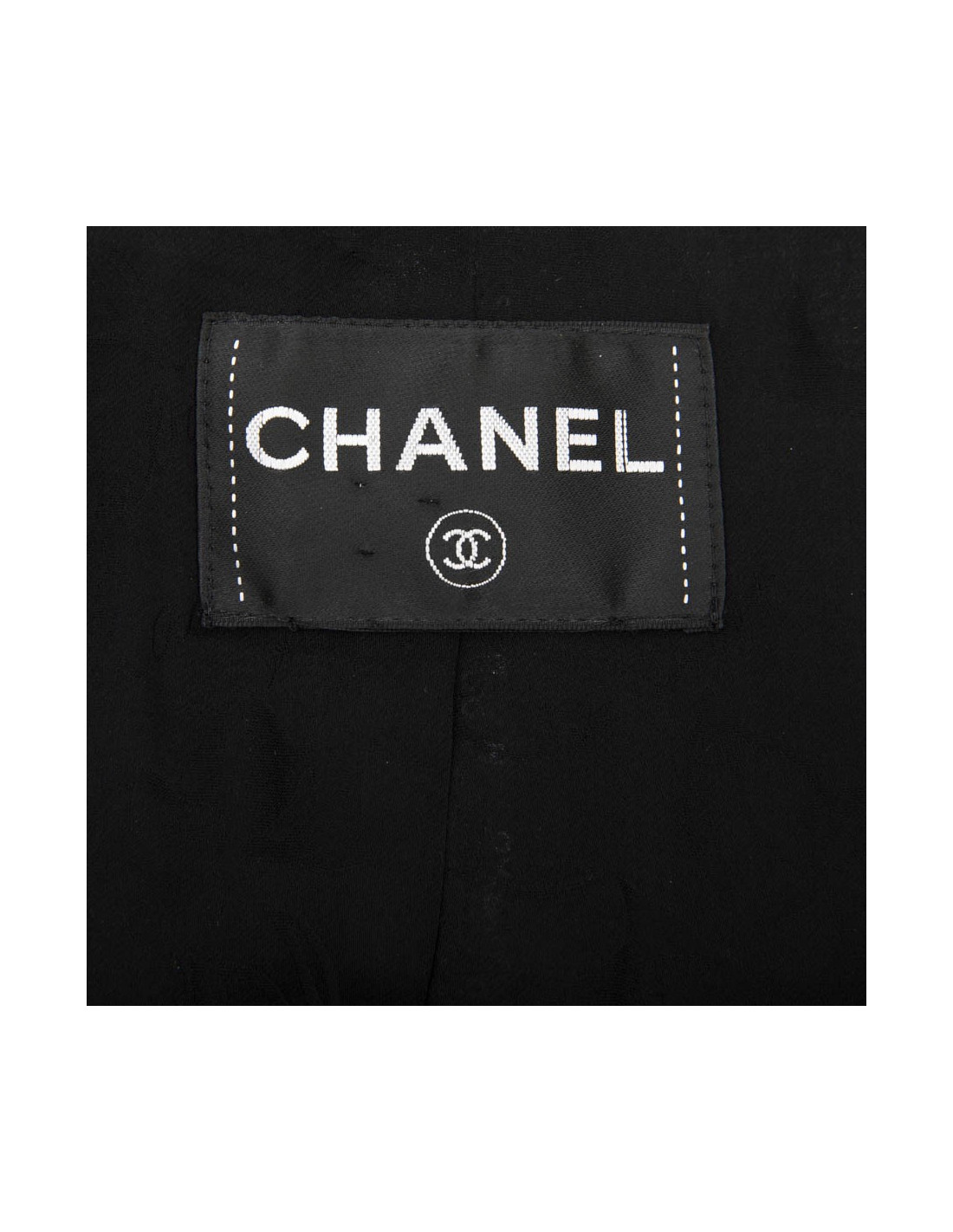Chanel short jacket with 3/4 sleeves in black sequins. Silk lining in black monogram. It closes with a zipper. Wide black piqué border and white stitching. In very good condition. size 34 (no label size and material)