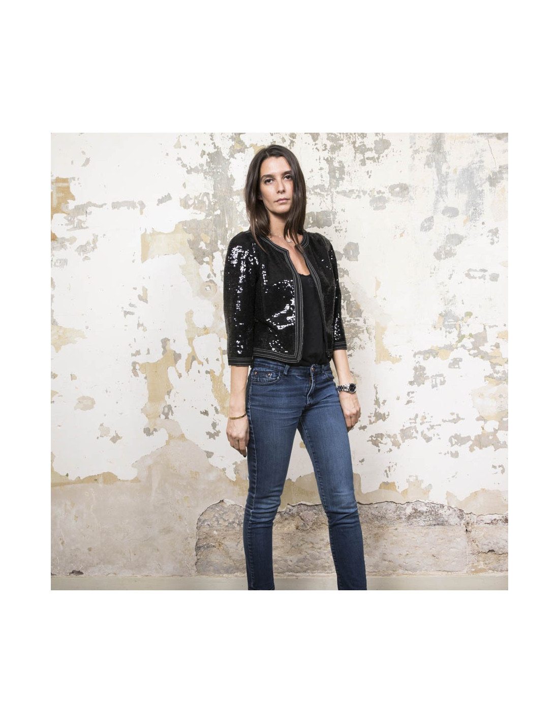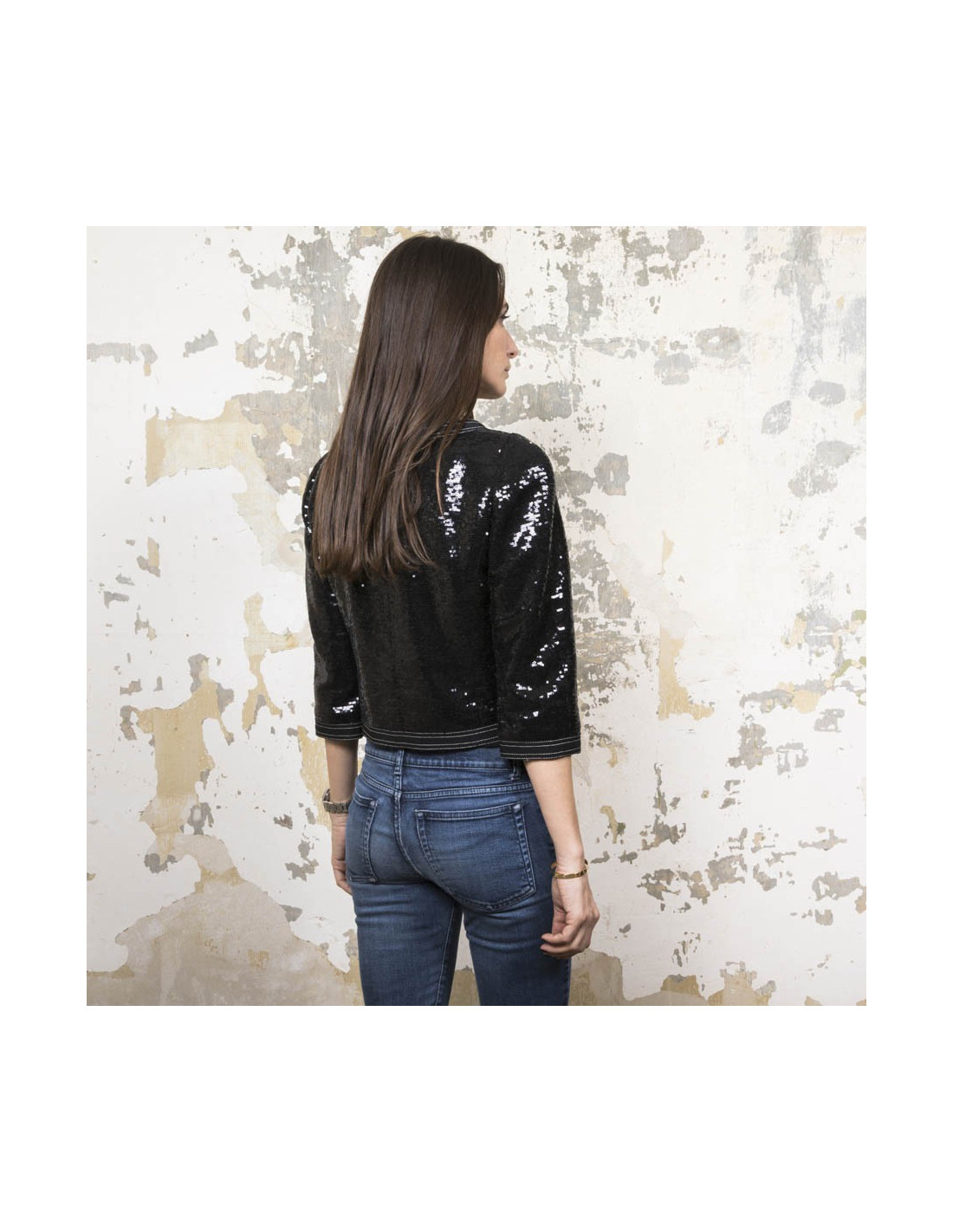 CHANEL short jacket size 34FR in black sequins