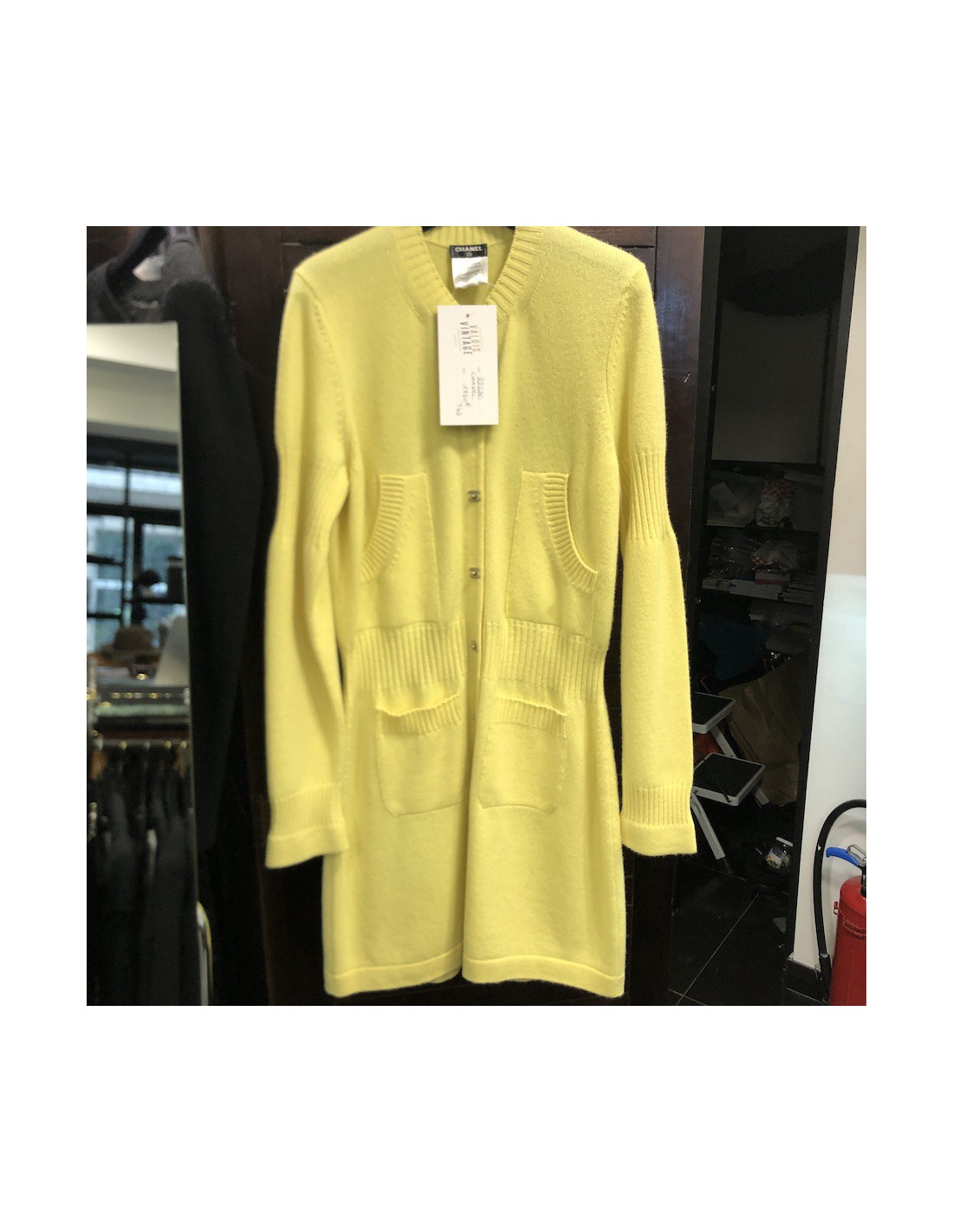 Last items in stock JACKETS CHANEL Vintage jacket in ecru linen size 38FR CHANEL 21367 1,900.00 € Vintage! CHANEL jacket in ecru linen. It is equivalent to a size 38 FR (no size and material label). It is cut arched. It closes with five golden brushed CC buttons. In very good used condition. Dimensions flat: shoulder width 42 cm, length of the sleeves 59 cm, wrist circumference 26 cm, width of the bottom 50 cm. Add to cart