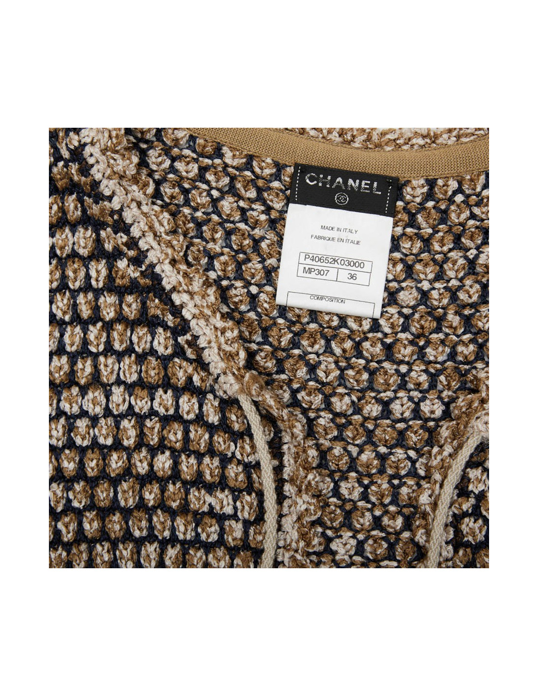 CHANEL vest in gold, navy and ecru knit size 36FR