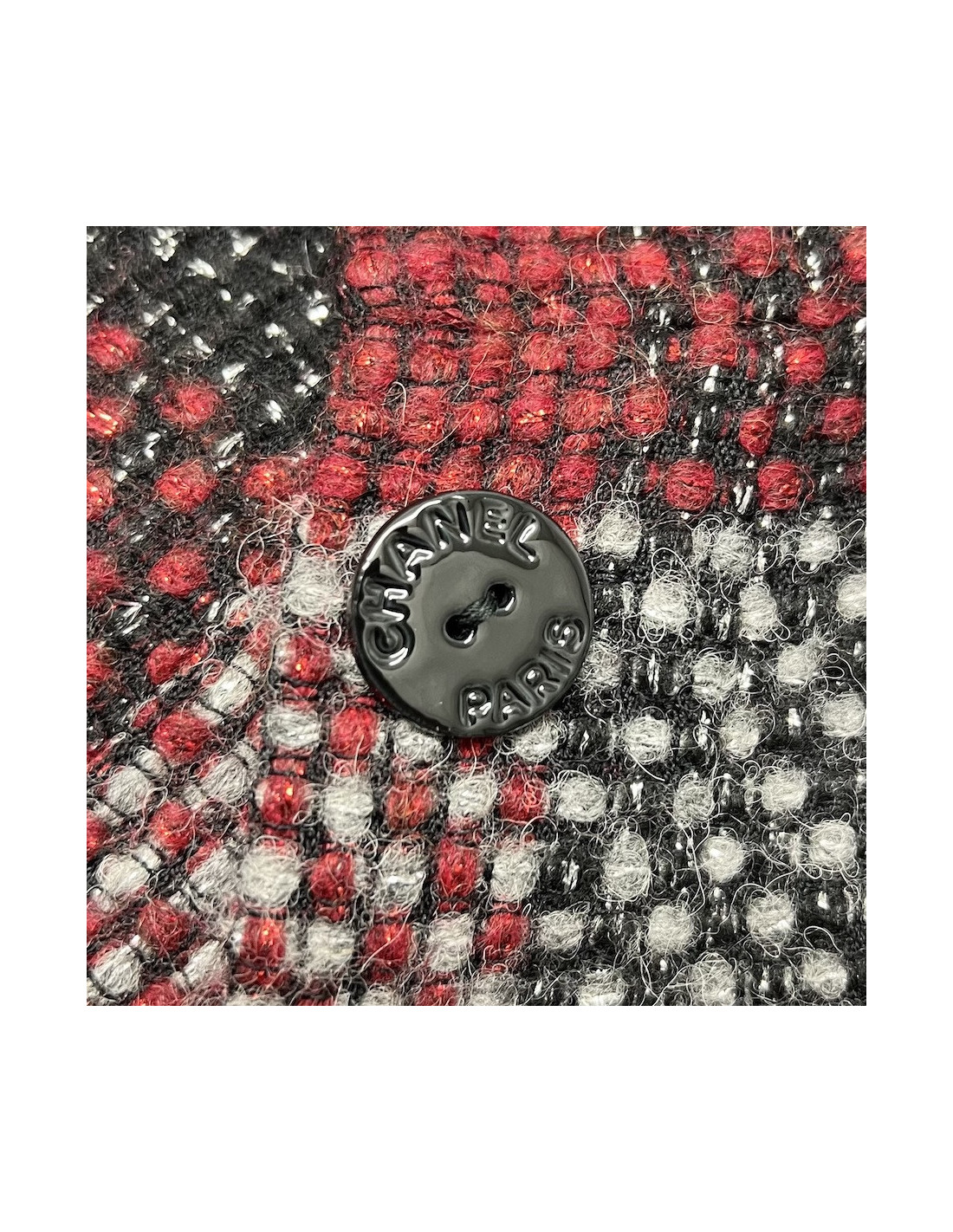CHANEL jacket in red, silver and black check tweed size 38FR