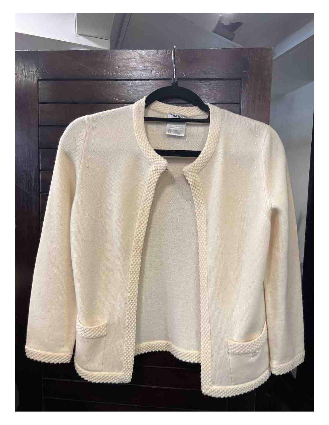 Last items in stock JACKETS CHANEL Vintage jacket in ecru linen size 38FR CHANEL 21367 1,900.00 € Vintage! CHANEL jacket in ecru linen. It is equivalent to a size 38 FR (no size and material label). It is cut arched. It closes with five golden brushed CC buttons. In very good used condition. Dimensions flat: shoulder width 42 cm, length of the sleeves 59 cm, wrist circumference 26 cm, width of the bottom 50 cm. Add to cart