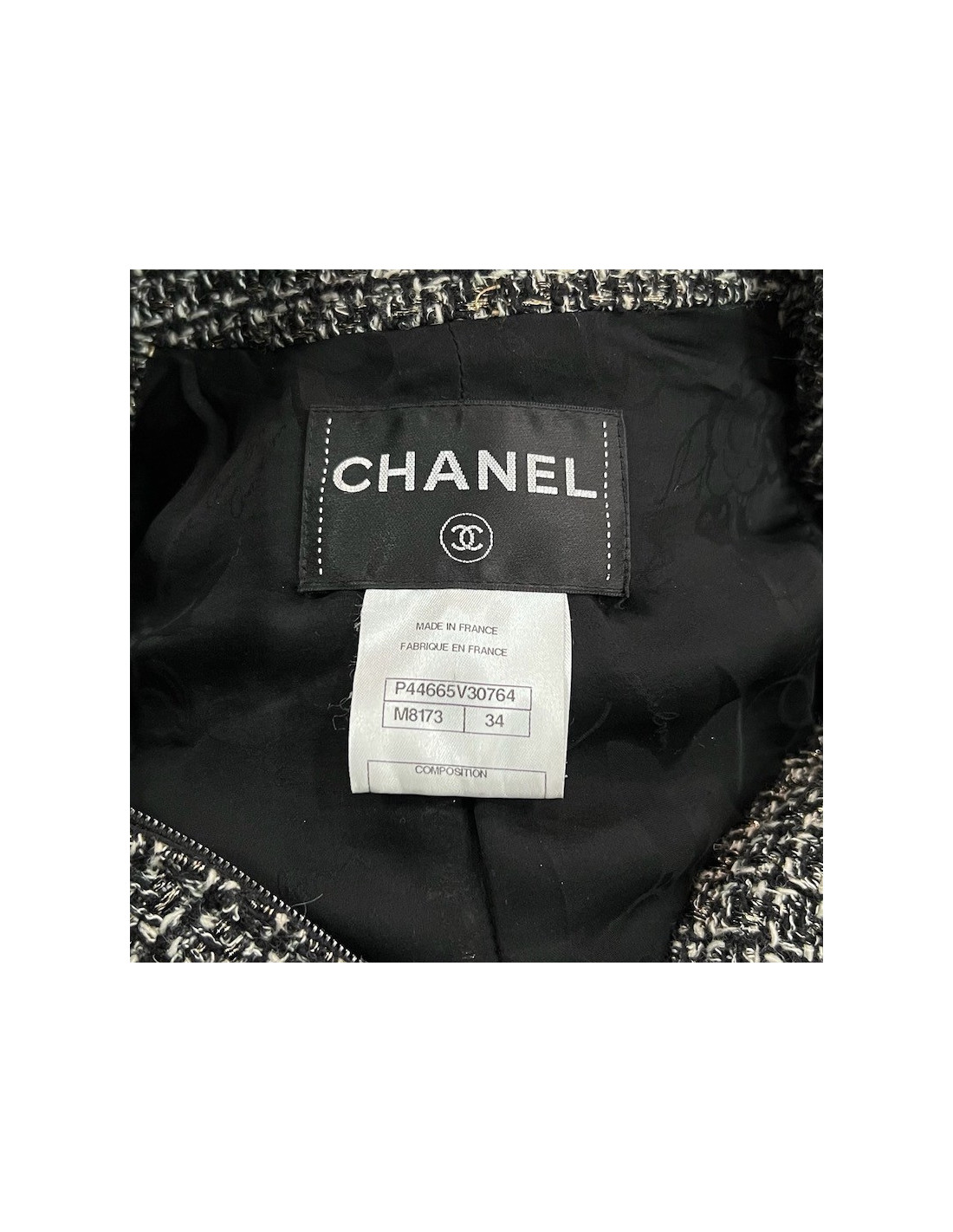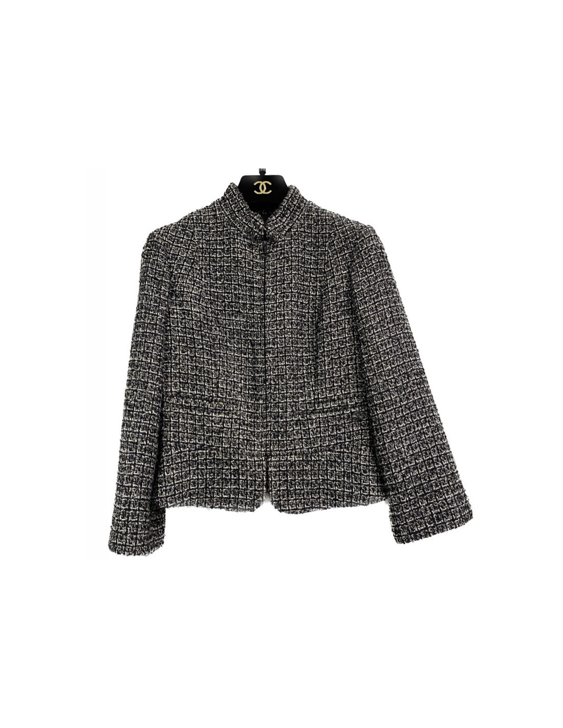 Last items in stock JACKETS CHANEL 'Paris-Bombay' jacket in gray tweed size 38EU CHANEL 20361 2,990.00 € Chanel 'Paris-Bombay' jacket in acrylic and wool in gray tweed lined with gray monogram silk, lined with Swarovski crystal mesh bands. It has a buttoned breastplate with false pockets (that can be removed). In very good shape.Size 38EU Dimensions flat: shoulder width raglan 38 cm, sleeve length 60 cm, wrist circumference 20 cm, width of the bottom 51 cm. Add to cart