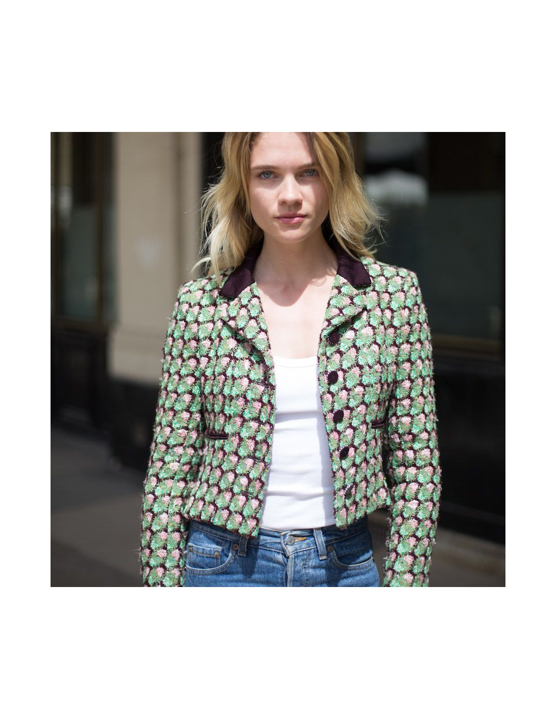 Last items in stock JACKETS CHANEL black, white and red jacket, size 40 FR CHANEL 33964 3,900.00 € Chanel lace jacket, Spring 2015 Condition : very goodMade in FranceSize : 40FRMaterial : acrylicLining : silk Colors : black, red, whiteHardware: antique silver finish metalMeasurements: shoulders 40 cm, underbust 48 cm, height 54 cm, sleeve length 62 cm, wrist 24 cmCollection : Spring 2015Details : 6 black CC monogram silver glitter buttons, 2 pockets,... Add to cart