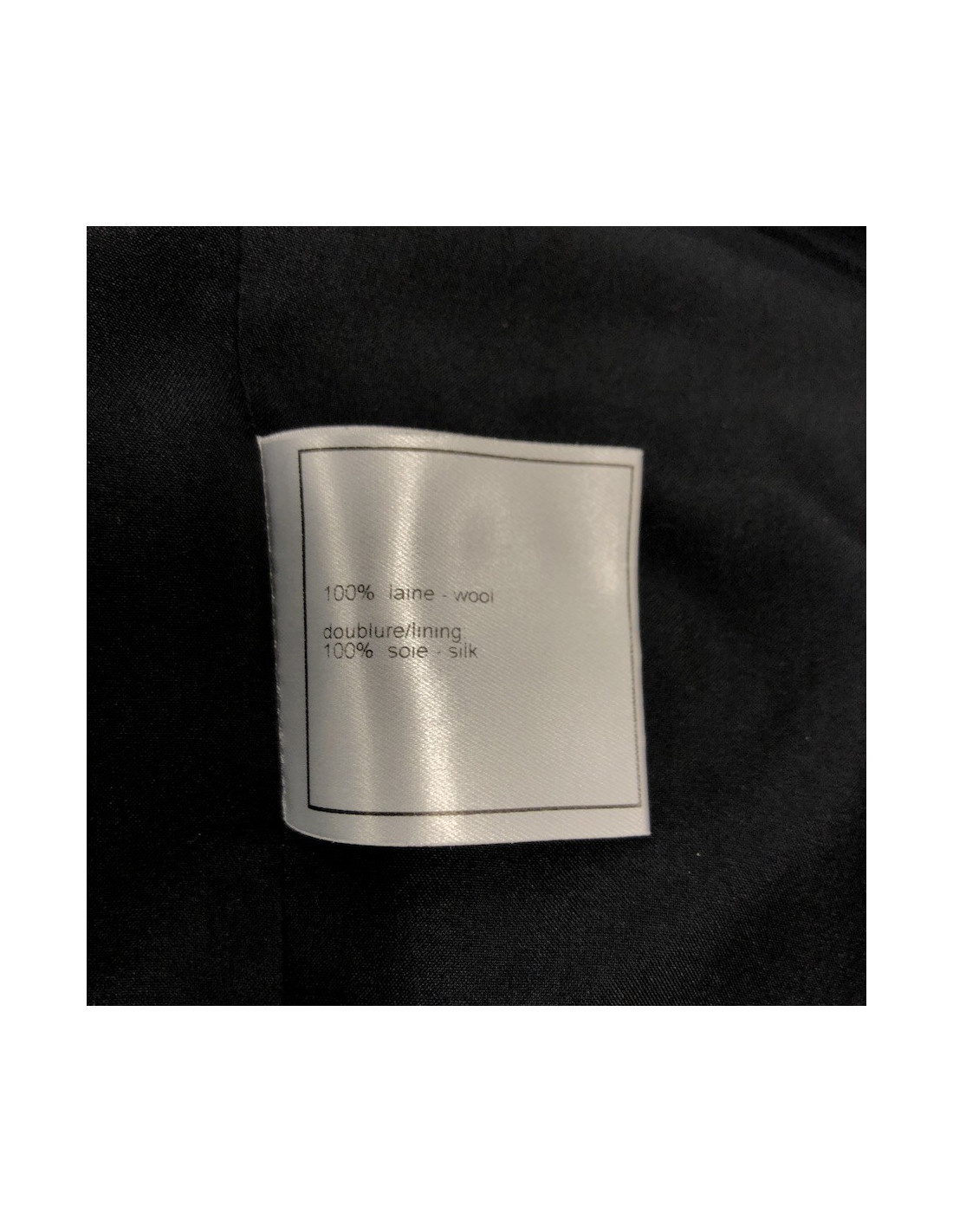 This CHANEL jacket is made in France. Flat dimensions are as follows: shoulder width 38 cm, overall length 55 cm, underarm width 42 cm, sleeve length 60 cm, wrist circumference 24 cm.