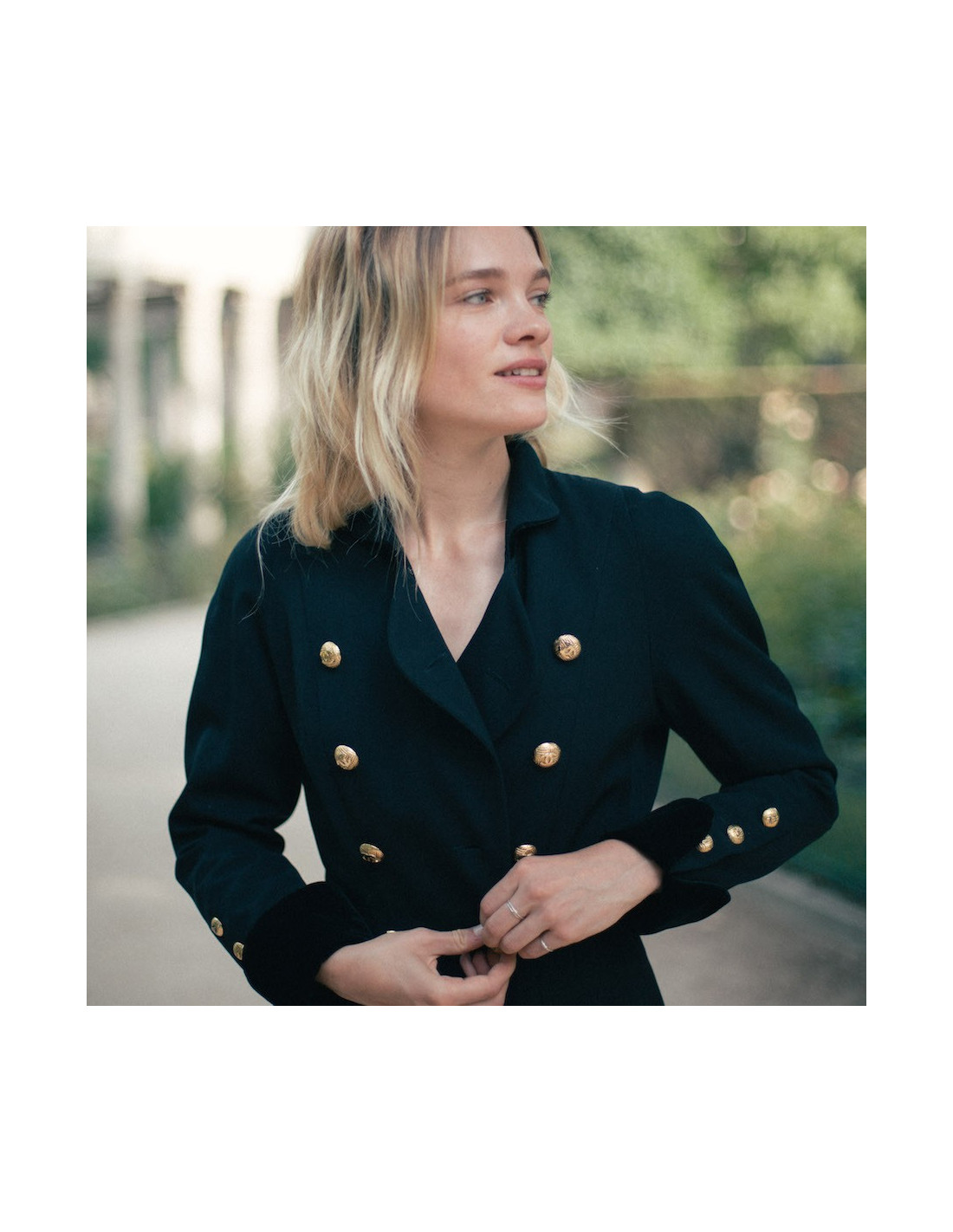 Last items in stock JACKETS CHANEL size 36FR blue tweed jacket with white and black lapels CHANEL 26353 2,500.00 € Chanel blue tweed jacket size 36FR Condition : never wornMade in FranceMaterials : cottonColors: blue, black, whiteMeasurements: 39 x 47 x 60 cm Add to cart
