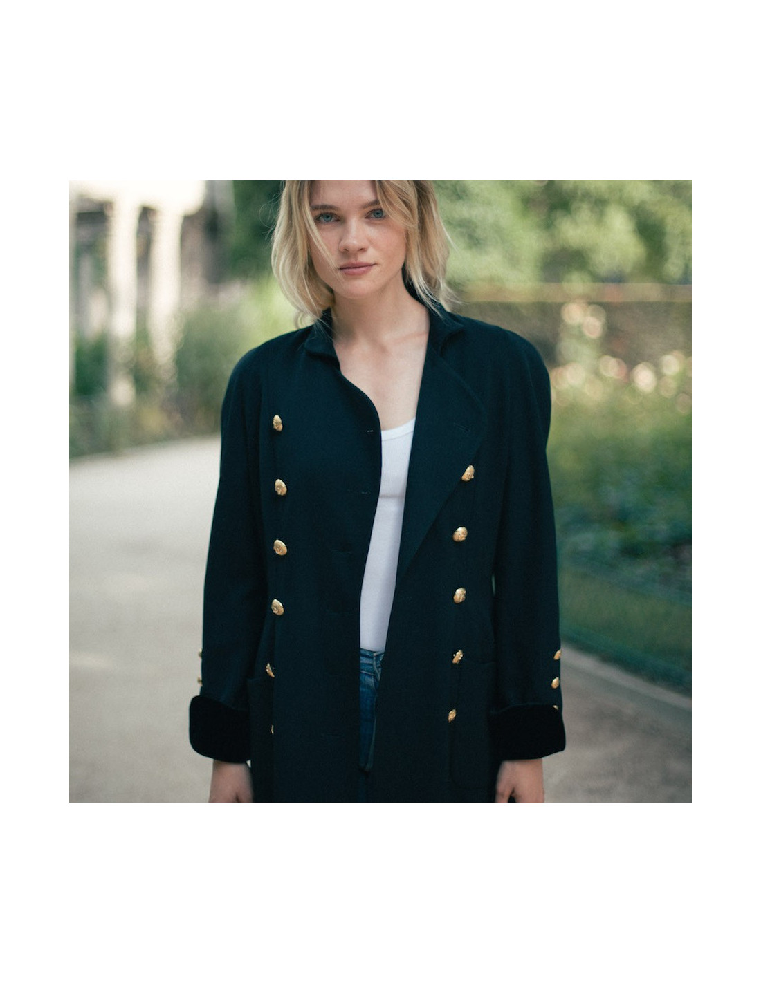 Last items in stock JACKETS CHANEL blue tweed jacket, size 36FR CHANEL 26786 4,300.00 € CHANEL blue tweed jacket from 1992 size 36FR Condition : very good Made in FranceMaterials: wool and silkColors : blue with a white trim Year: 1992Measurements : shoulders 45 cm, sleeves length : 50 cm, total height : 61 cm armpit width: 48 cm, wrist circumference 36 cm, hem 43 cm Add to cart