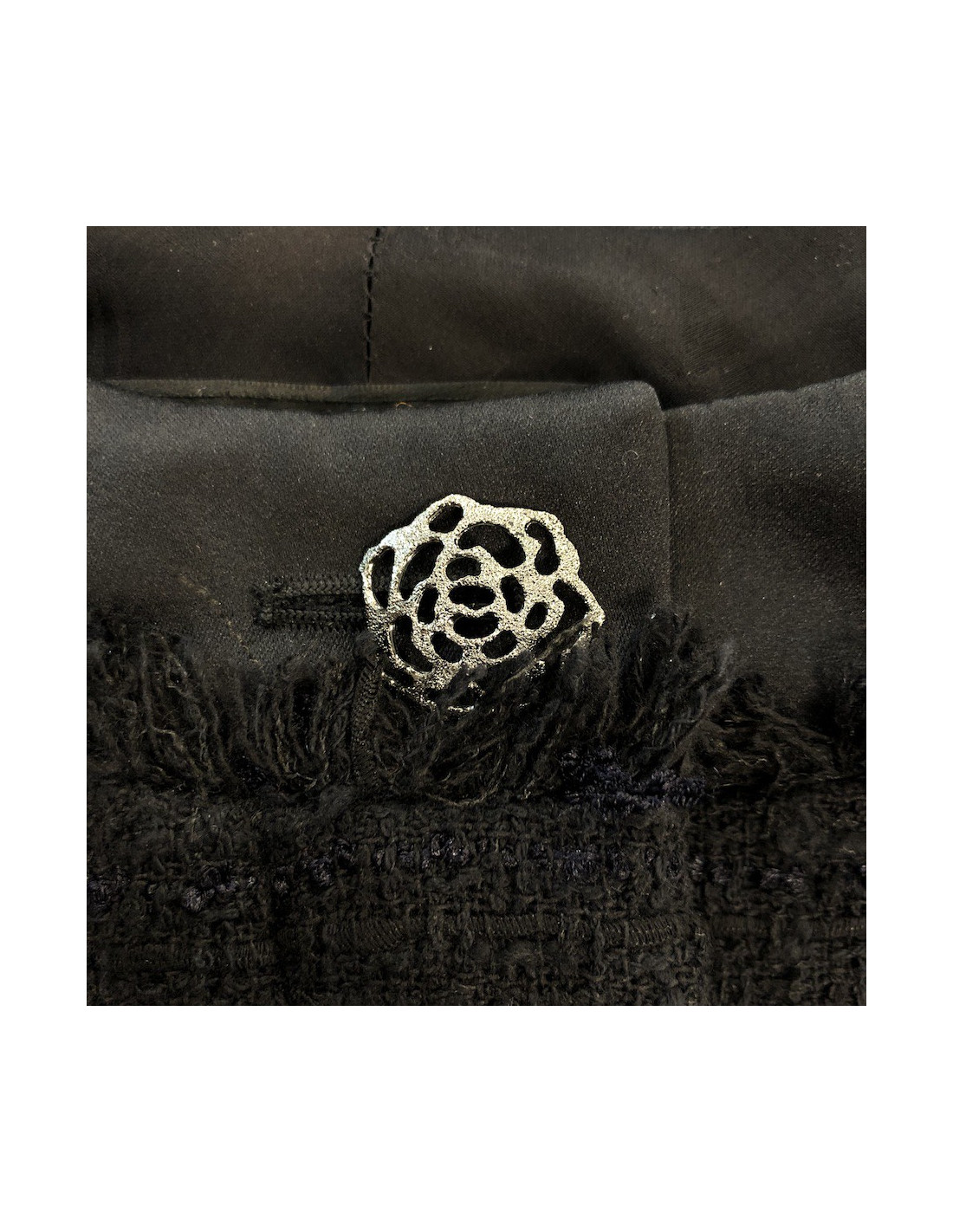Last items in stock JACKETS CHANEL T40 jacket in brown tweed and black shiny threads CHANEL 22904 3,400.00 € Chanel jacket in brown, black and white tweed woven with black shiny threads. Size40 (no size tag). It is lined in brown monogram silk. Nice detail on the collar: it is entirely covered with black sequins. Each handle has 3 black buttons with pearl inlays. Dimensions flat: Shoulder width 40 cm, underarm 45 cm, total height 54 cm, sleeve length 62 cm. Will... Add to cart