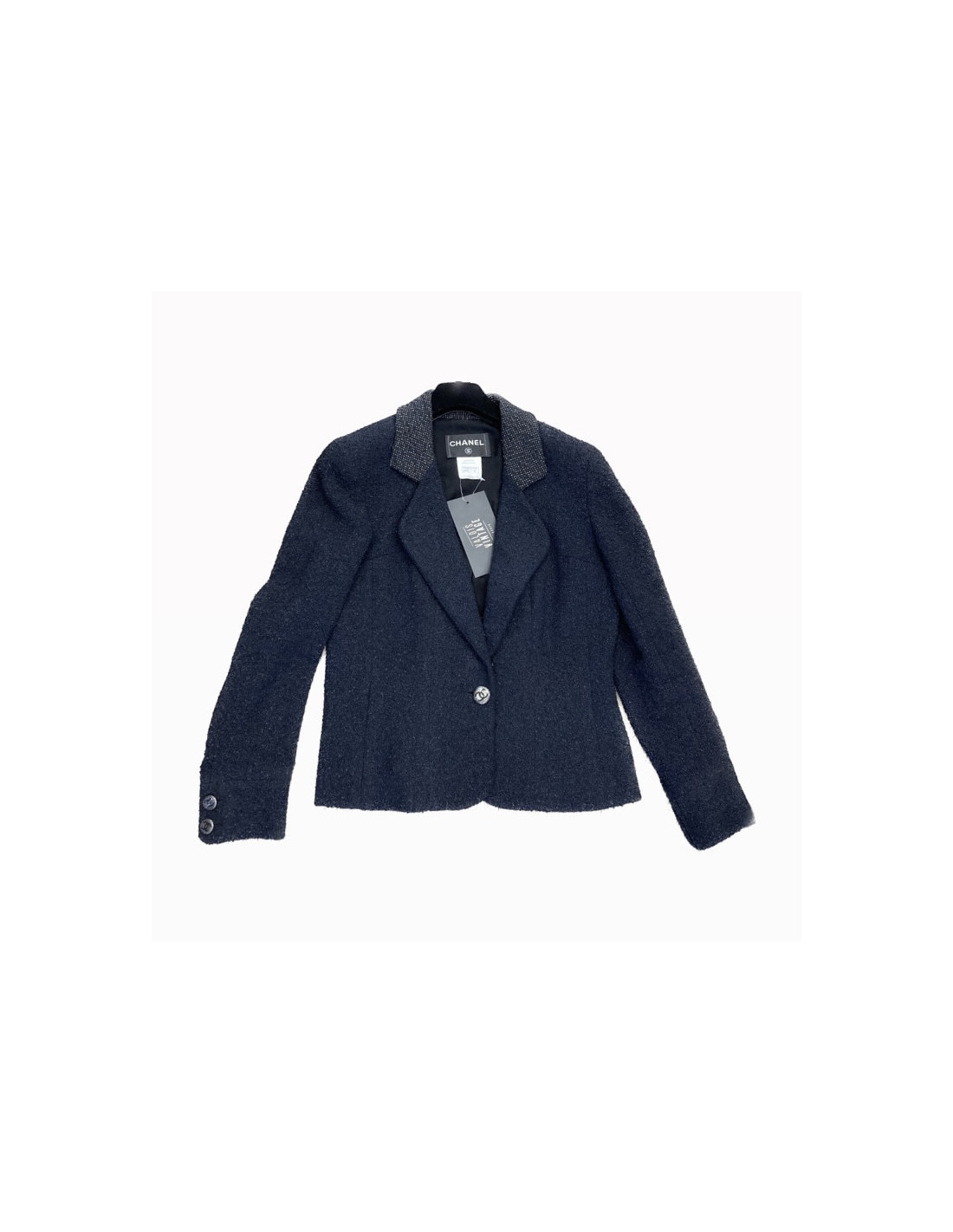 Last items in stock JACKETS CHANEL tweed jacket Size 46 FR CHANEL 33136 4,100.00 € Chanel black jacket Size 46 FR Condition : very goodMade in FranceSize : 46 FR (fits more like a 44FR)Materials : tweed, silkColors : black, white, green, blue, purpleButtons : green, silver, blackYear : Fall 2009 ready to wearMeasurements : shoulders: 42 cm, underbust: 56 cm, height: 64 cm, sleeve length: 52 cm, wrist: 30 cmDetails: black silk monogram... Add to cart