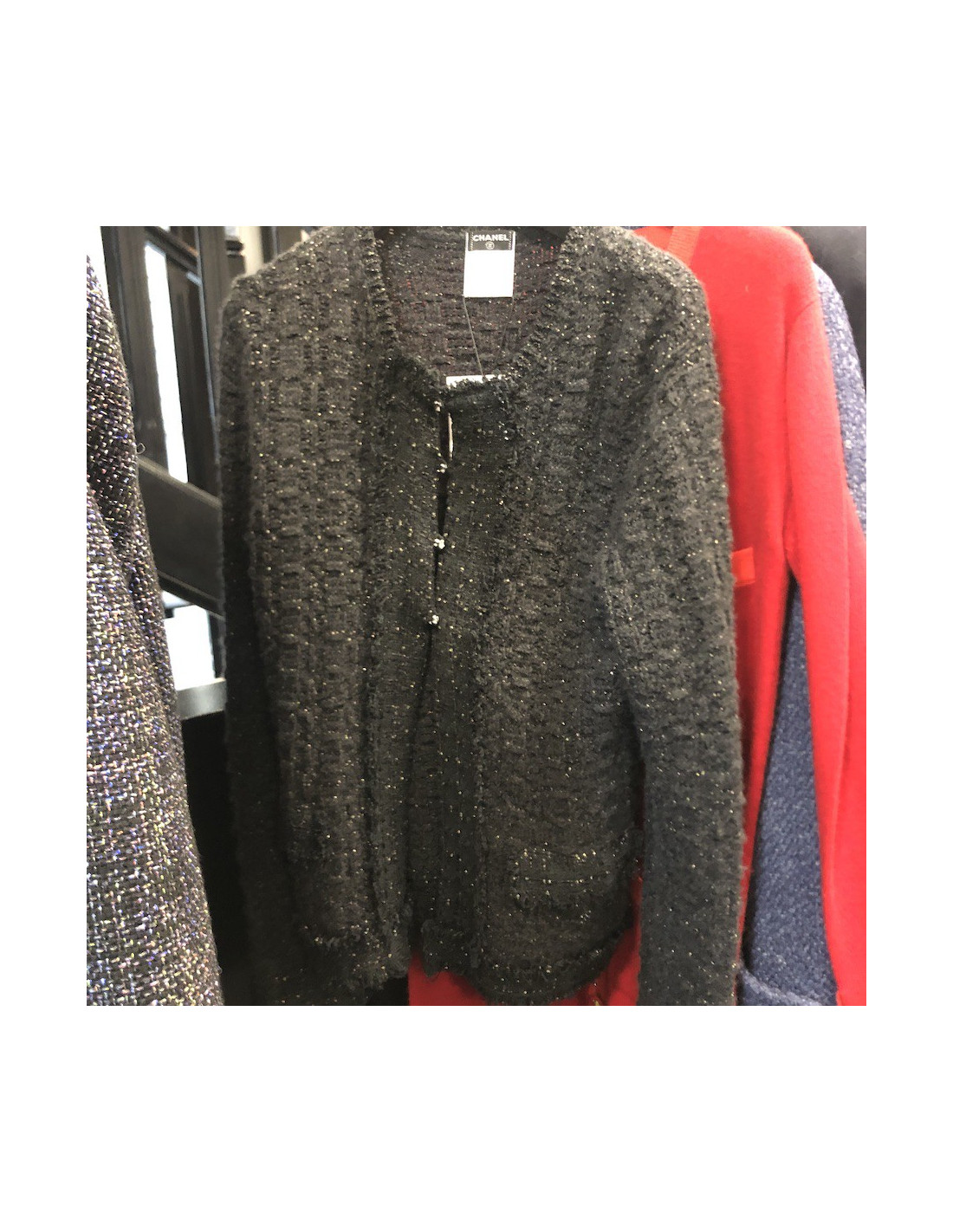 Last items in stock JACKETS CHANEL Vintage jacket in ecru linen size 38FR CHANEL 21367 1,900.00 € Vintage! CHANEL jacket in ecru linen. It is equivalent to a size 38 FR (no size and material label). It is cut arched. It closes with five golden brushed CC buttons. In very good used condition. Dimensions flat: shoulder width 42 cm, length of the sleeves 59 cm, wrist circumference 26 cm, width of the bottom 50 cm. Add to cart