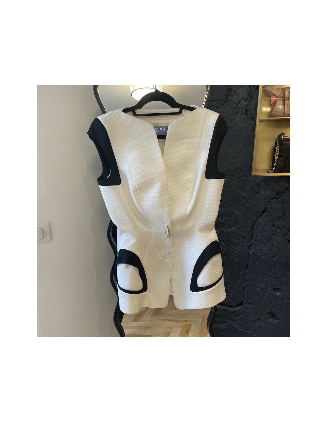 Last items in stock JACKETS CHANEL size 36FR blue tweed jacket with white and black lapels CHANEL 26353 2,500.00 € Chanel blue tweed jacket size 36FR Condition : never wornMade in FranceMaterials : cottonColors: blue, black, whiteMeasurements: 39 x 47 x 60 cm Add to cart