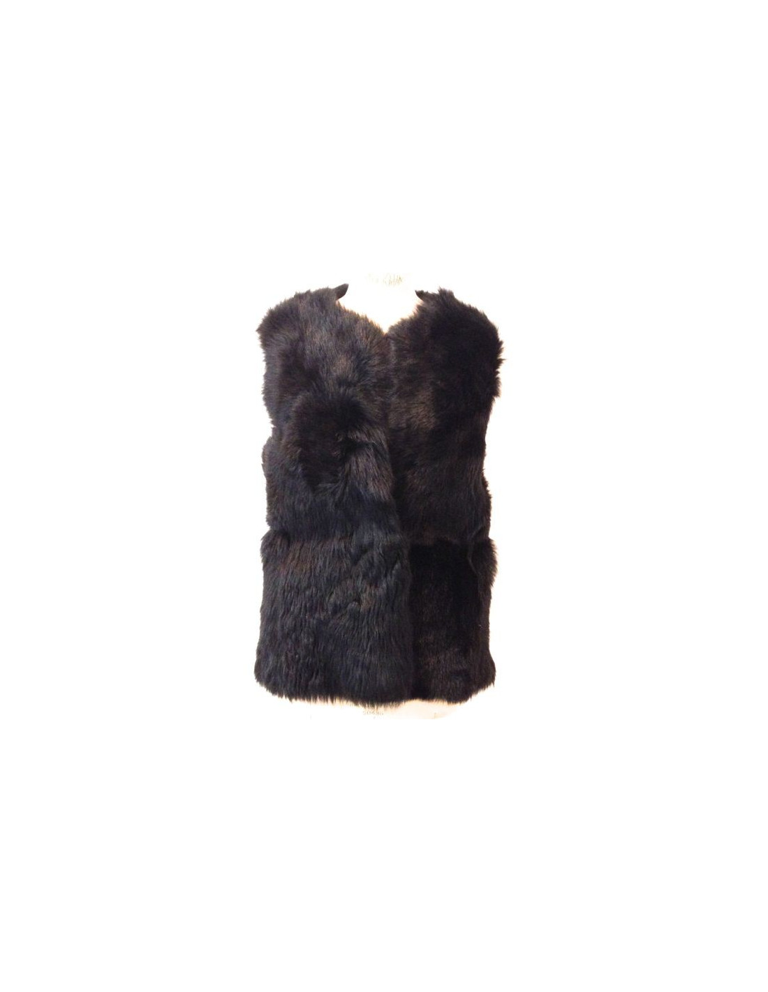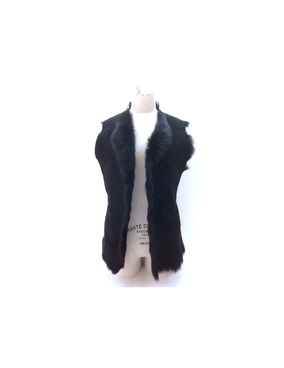 Jacket without sleeves in returned black Sheepskin. It is reversible. One size fits all.